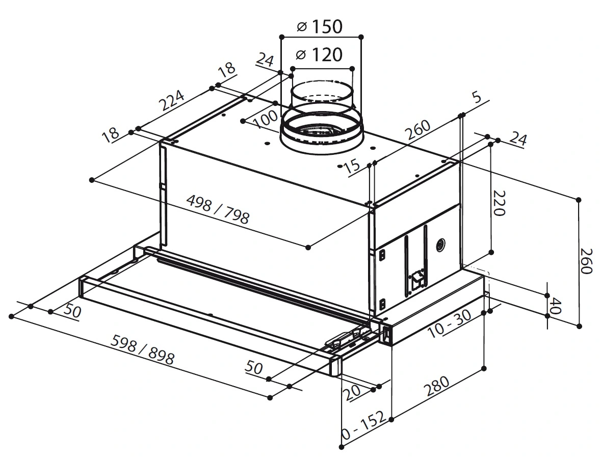 - Тип установки: телескопическая (встраиваемая в шкаф)