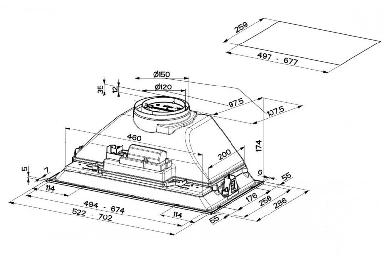 - Тип: встраиваемая вытяжка