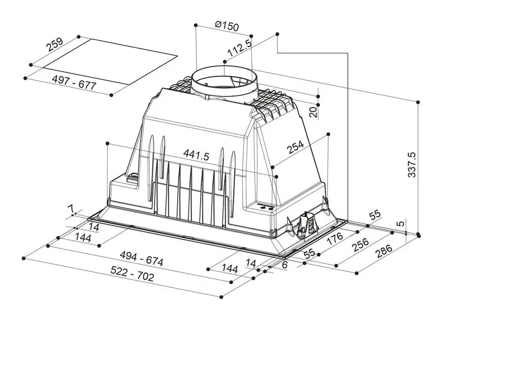 - Диаметр воздуховода, мм 150