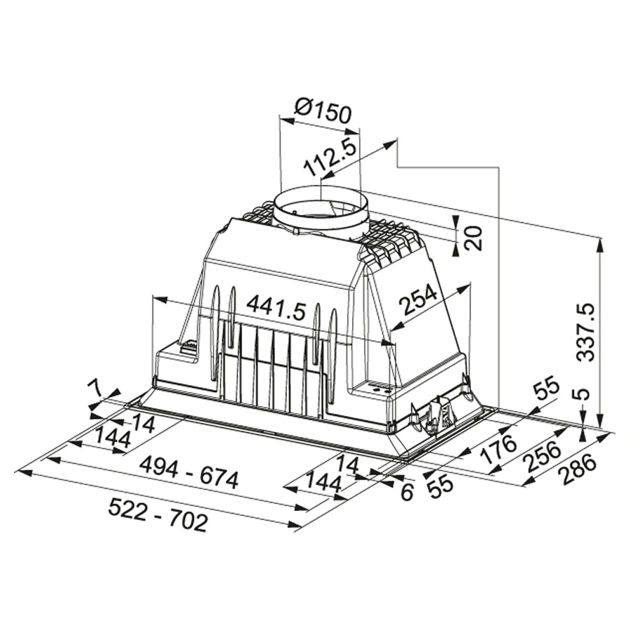 - Тип: встраиваемая вытяжка