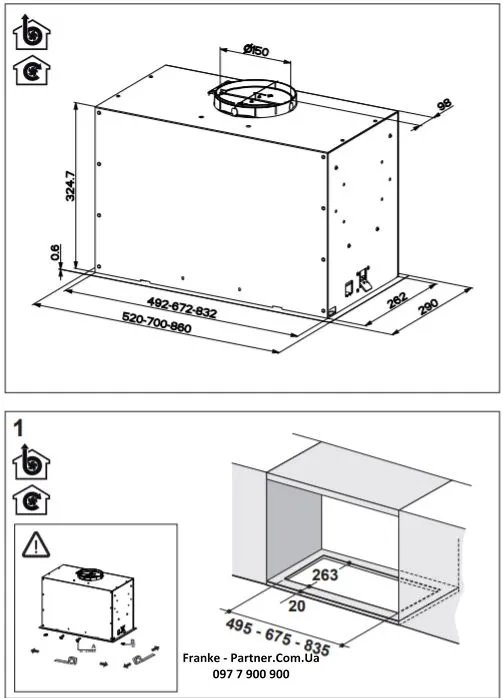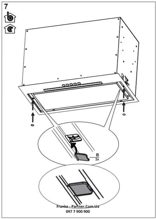 Franke FBFE XS A70 — это мощная встраиваемая вытяжка шириной 70 см с максимальной производительностью 1120 м³/ч. Она сочетает в себе современный дизайн, эффективную очистку воздуха и полностью скрытую установку, идеально подходящую для кухонь в стиле мінімалізм или хай-тек.