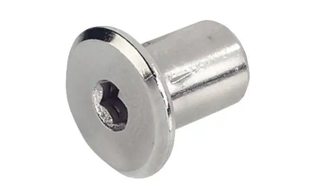 Втулочна гайка з плоскоконічною голівкою, виготовлена з нікельованої сталі.