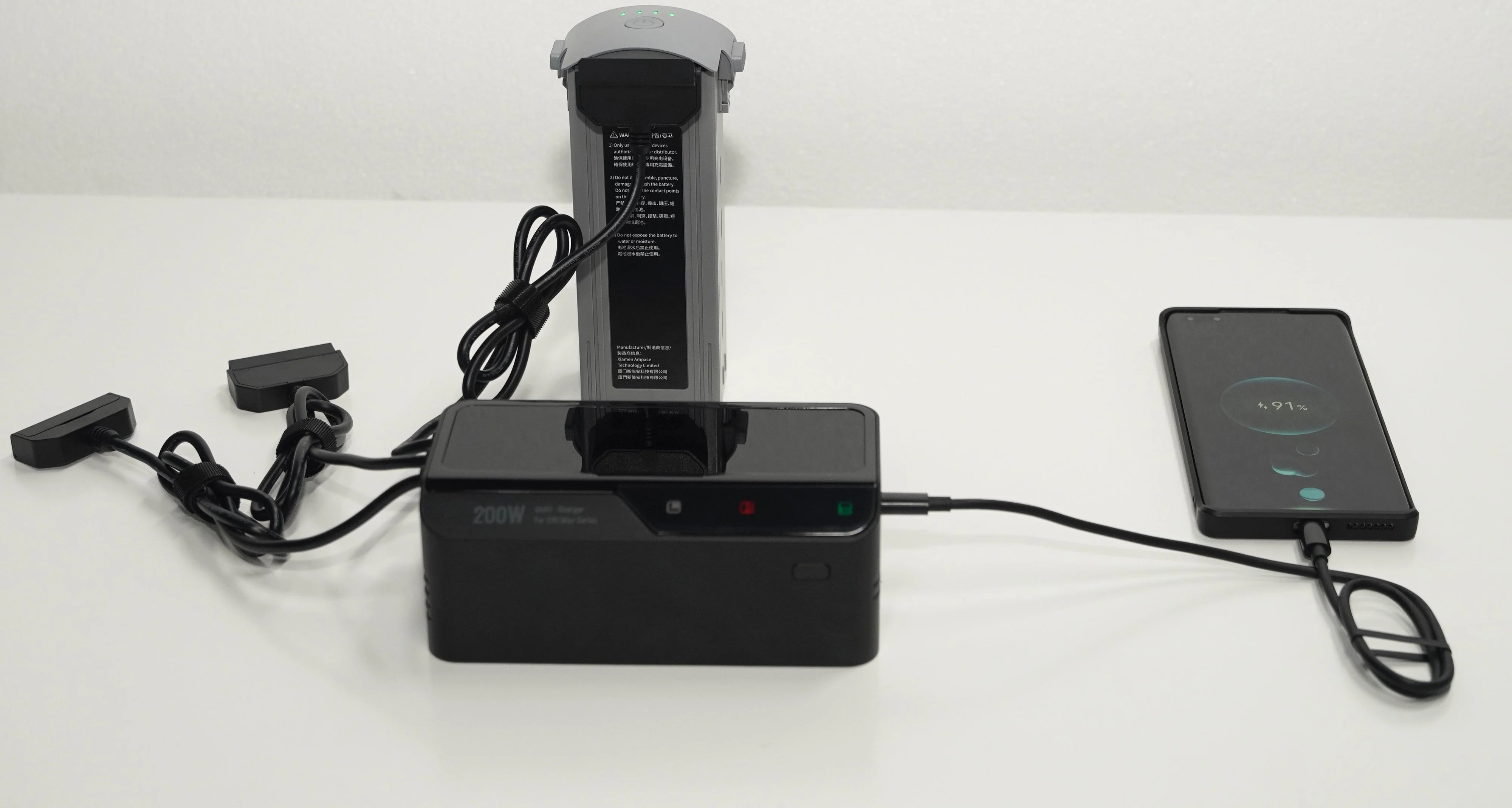 Серія Autel EVO Max - це універсальний багатофункціональний зарядний пристрій, розроблений для зручного та ефективного заряджання. Завдяки здатності одночасно заряджати інтелектуальний контролер, акумулятори та навіть мобільні телефони, багатофункціональний зарядний пристрій Autel EVO Max є комплексним рішенням для зарядки для користувачів. Акцент на безпеку, підтримку декількох пристроїв і ефективність роблять його ідеальним аксесуаром для користувачів серії EVO Max.