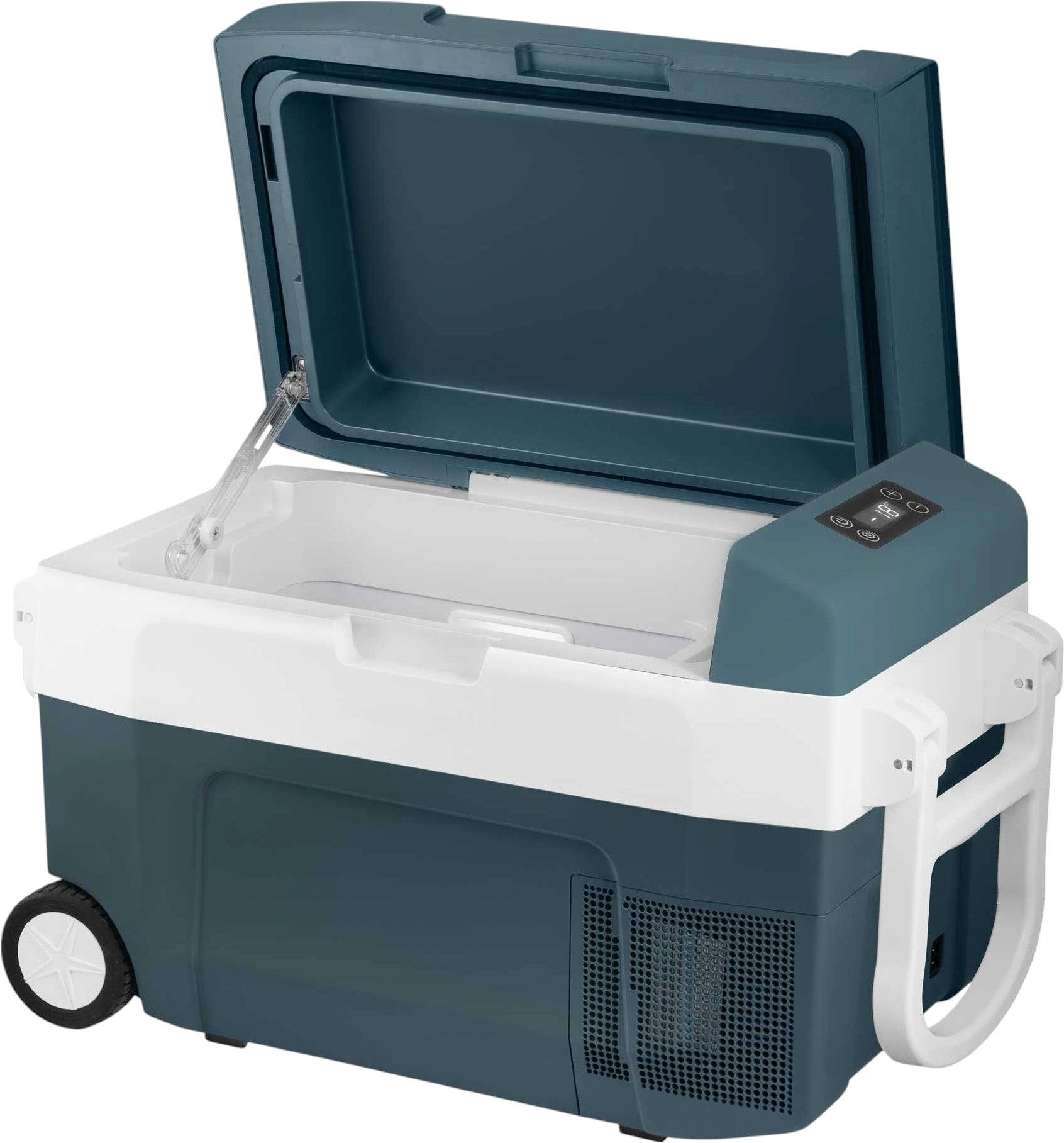 Потужний компресорний автомобільний холодильник об'ємом 35 літрів, який охолоджує, заморожує та нагріває. Для вечірок на свіжому повітрі, в дорозі, далеко від цивілізації... існує безліч ситуацій, коли потрібно перевозити напої та їжу, зберігаючи їх при потрібній температурі. І цей великий компресорний автомобільний холодильник може вмістити багато смаколиків. Він пропонує дві окремі камери під однією кришкою. Більшу морозильну камеру об'ємом 27 літрів та меншу чилерну камеру об'ємом 8 літрів.