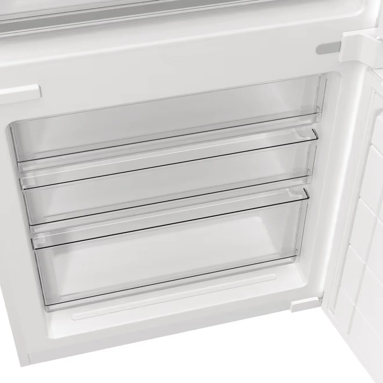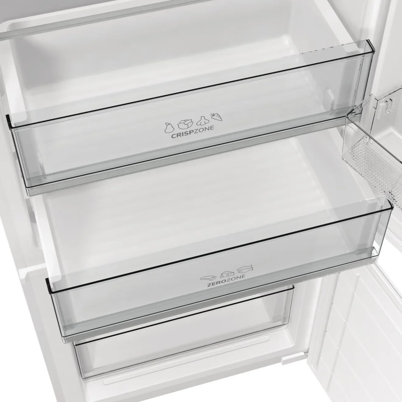 Gorenje NRKI619EA3 — это вместительный и технологичный встроенный холодильник с нижней морозильной камерой, системой NoFrost Plus и зоной свежести. Благодаря высоте почти 194 см и общему объему 341 литр, он отлично подойдёт для большой семьи.