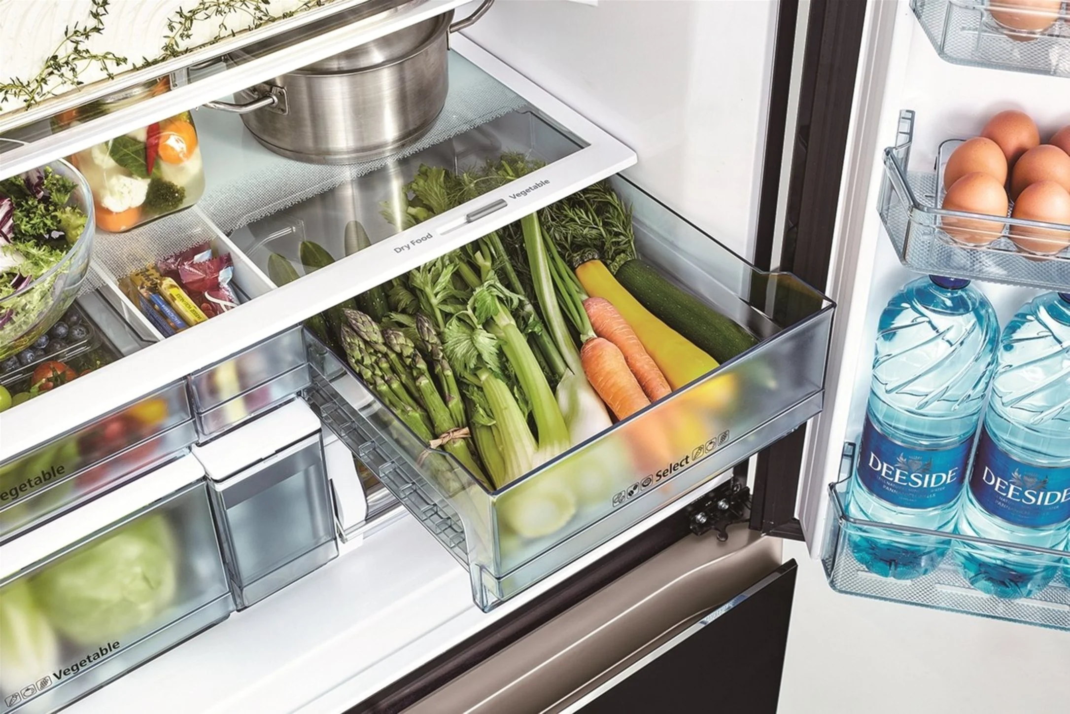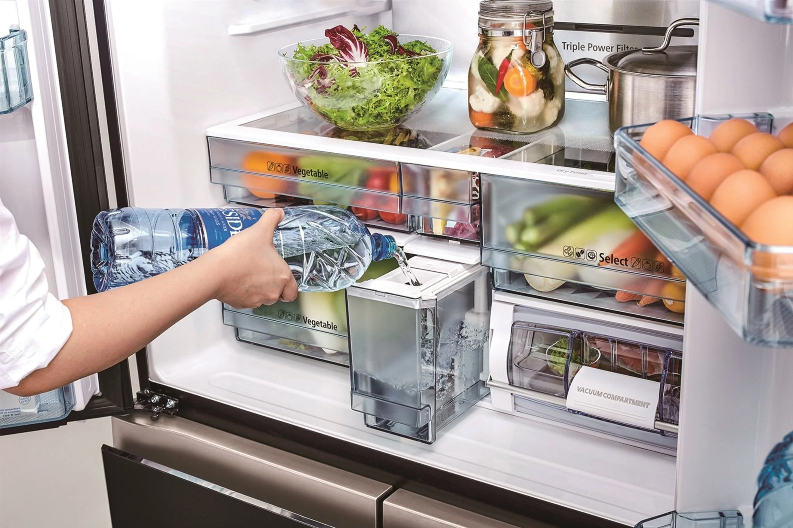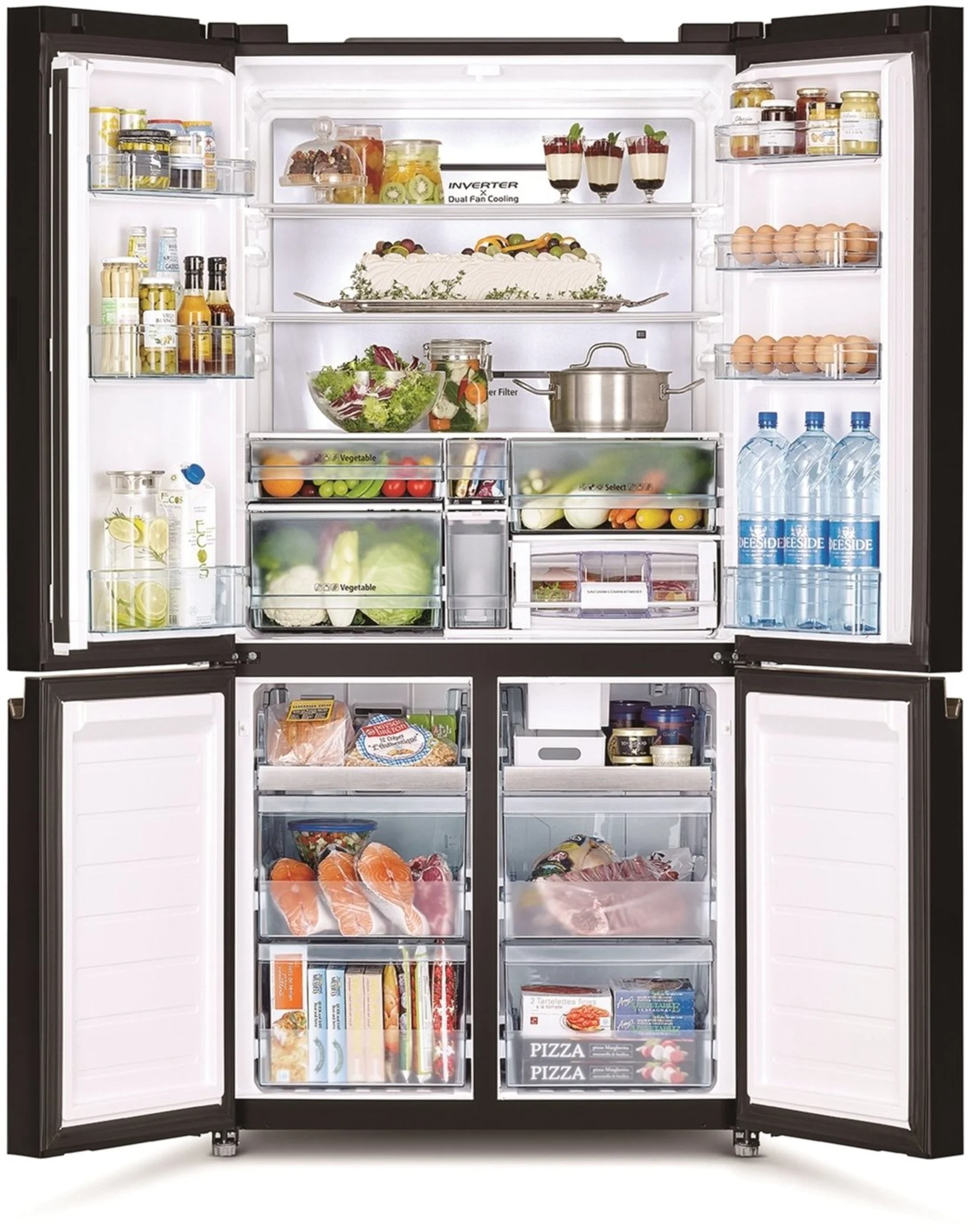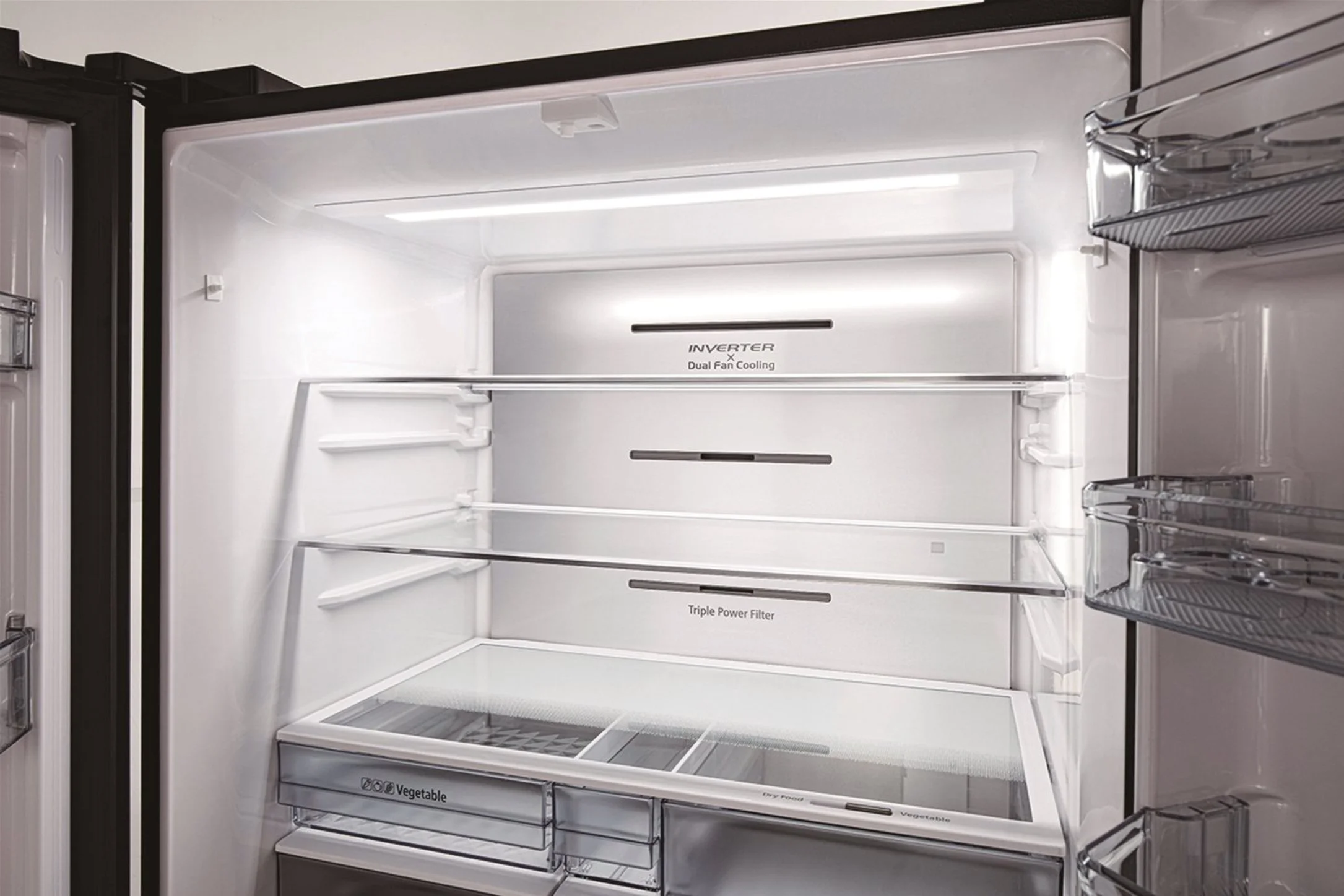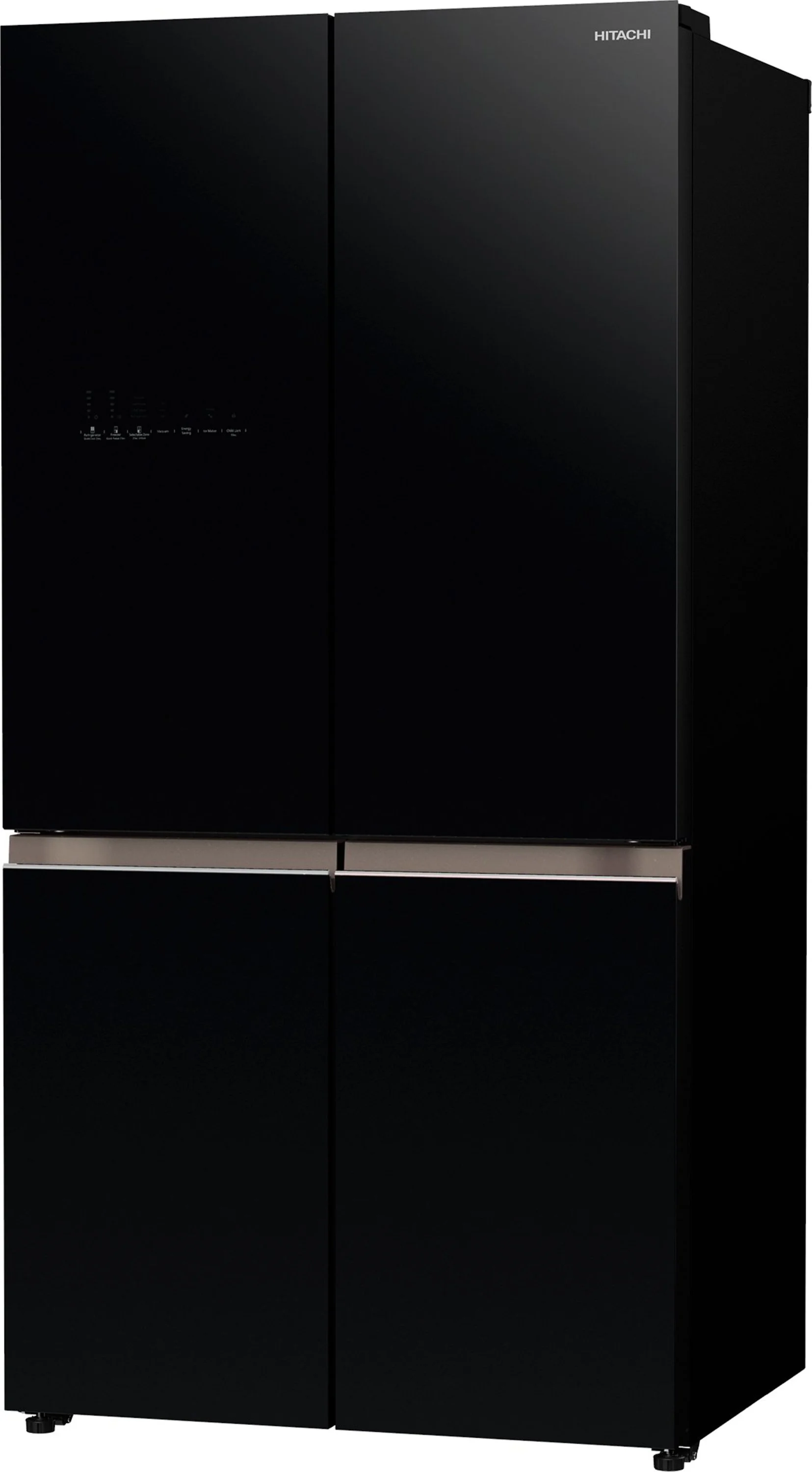 Холодильник Hitachi R-WB720VUC належить до двокамерних агрегатів великого об'єму. Містка модель об'ємом 568 л розрахована на велику родину, здатна зберігати свіжі продукти для 5-7 осіб. Вишуканий скляний фасад чорного кольору прикрасить будь-яку кухню. Габарити чималі: ширина – 90 см, глибина – 72 см, висота – 184 см. Нижнє розташування морозилки зручне для користування навіть за такої висоти холодильника. У агрегату 4 двері, що дозволяє відкриваючи холодильник, краще зберігати температуру всередині. Інверторний компресор зі штучним інтелектом. Автоматичний льодогенератор. Відділення для овочів з вологим охолодженням. Фільтр Nano Titanium. Dual Fan Cooling - два вентилятори, в камерах повітря не змішується