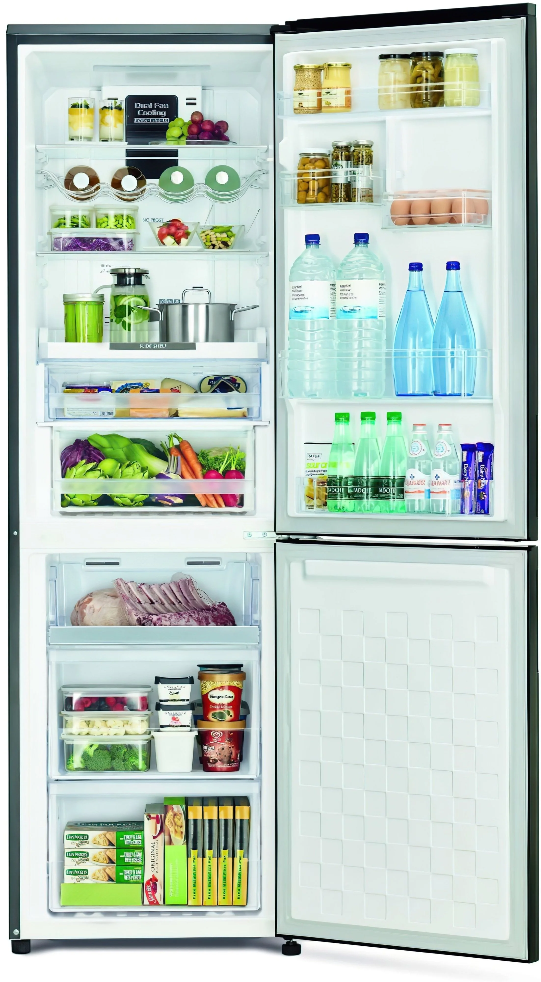 Холодильник Hitachi з нижн. мороз., 190x60х65, холод.відд.-215л, мороз.відд.-115л, 2дв., А++, NF, ін