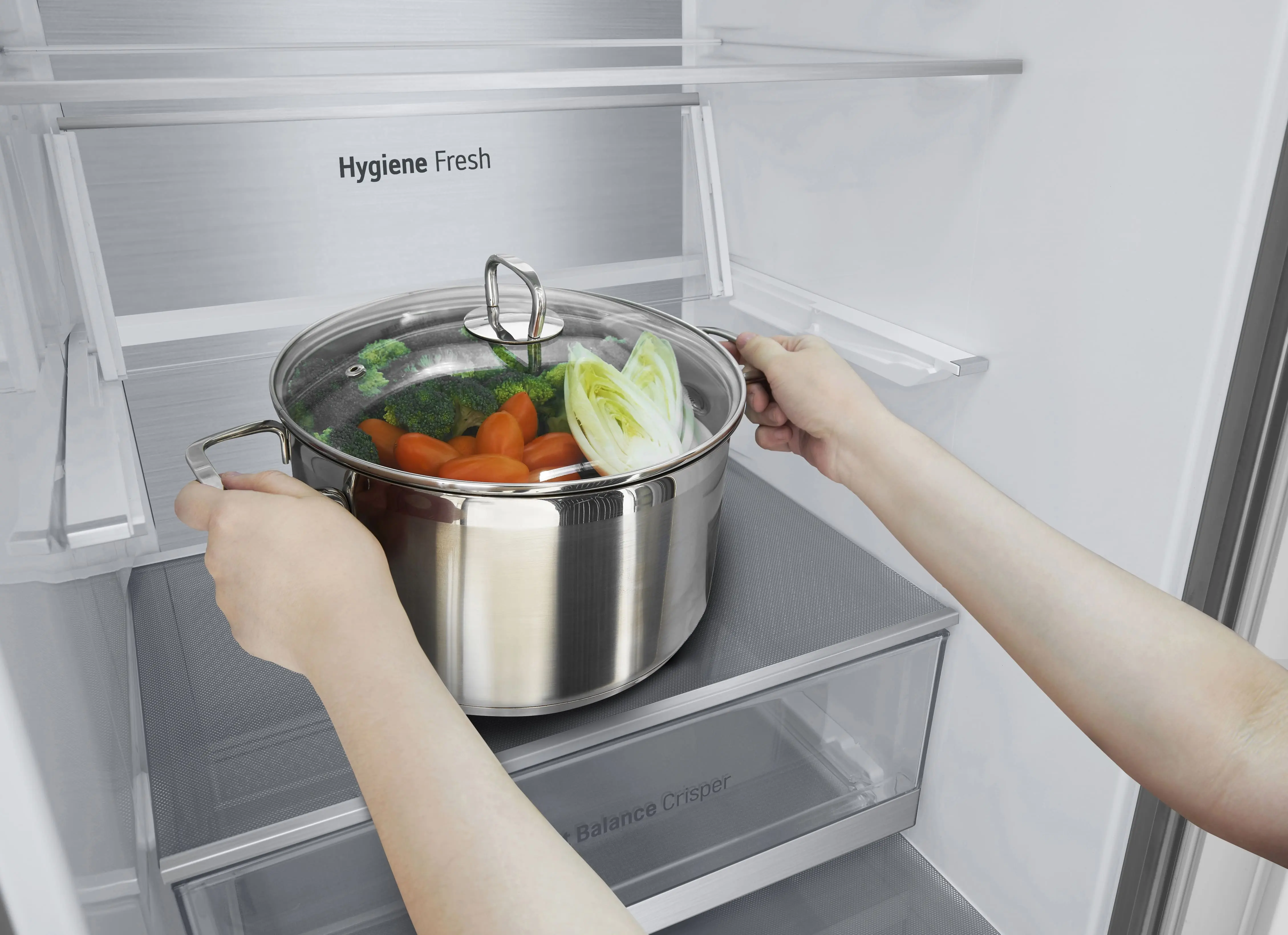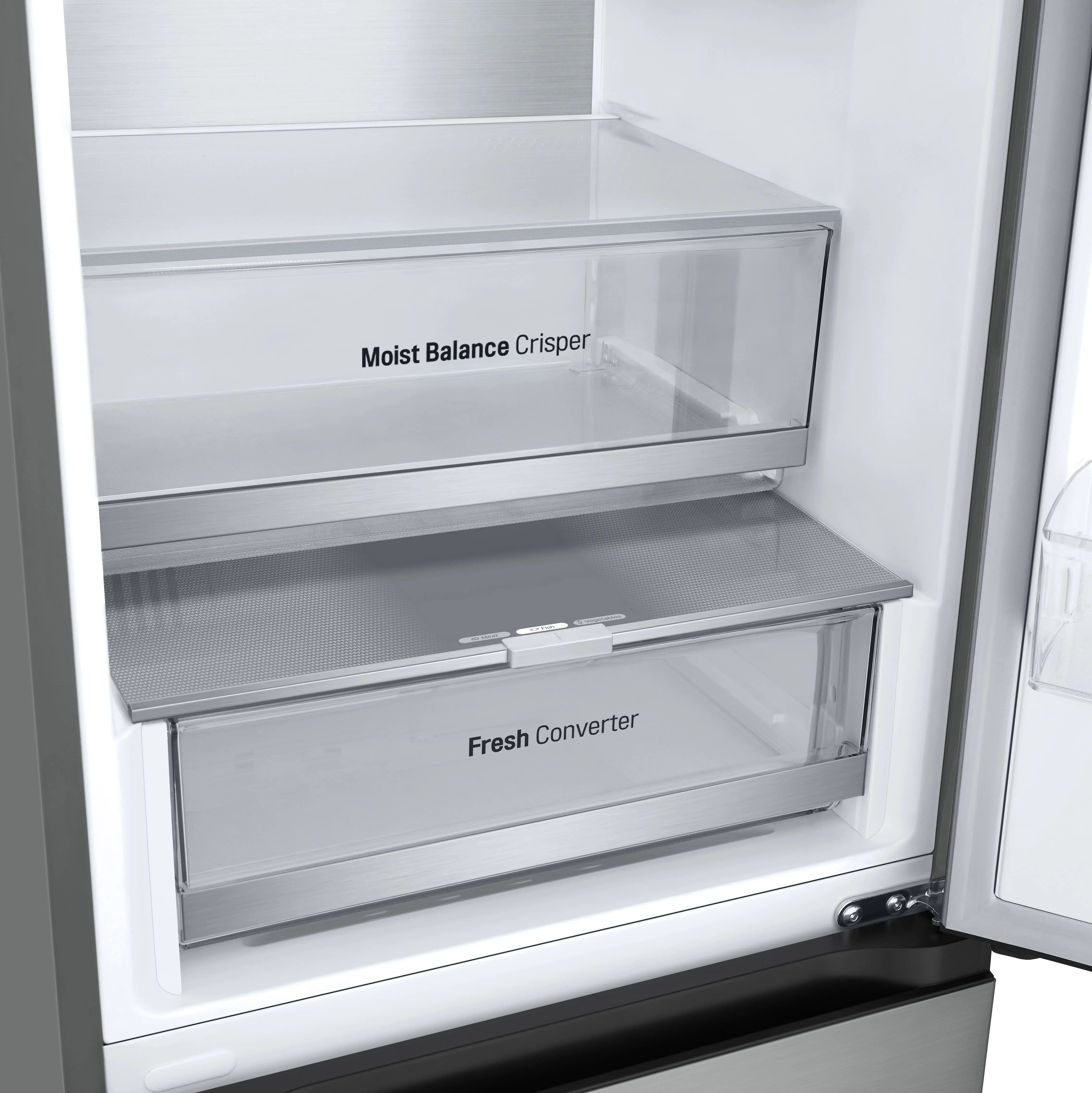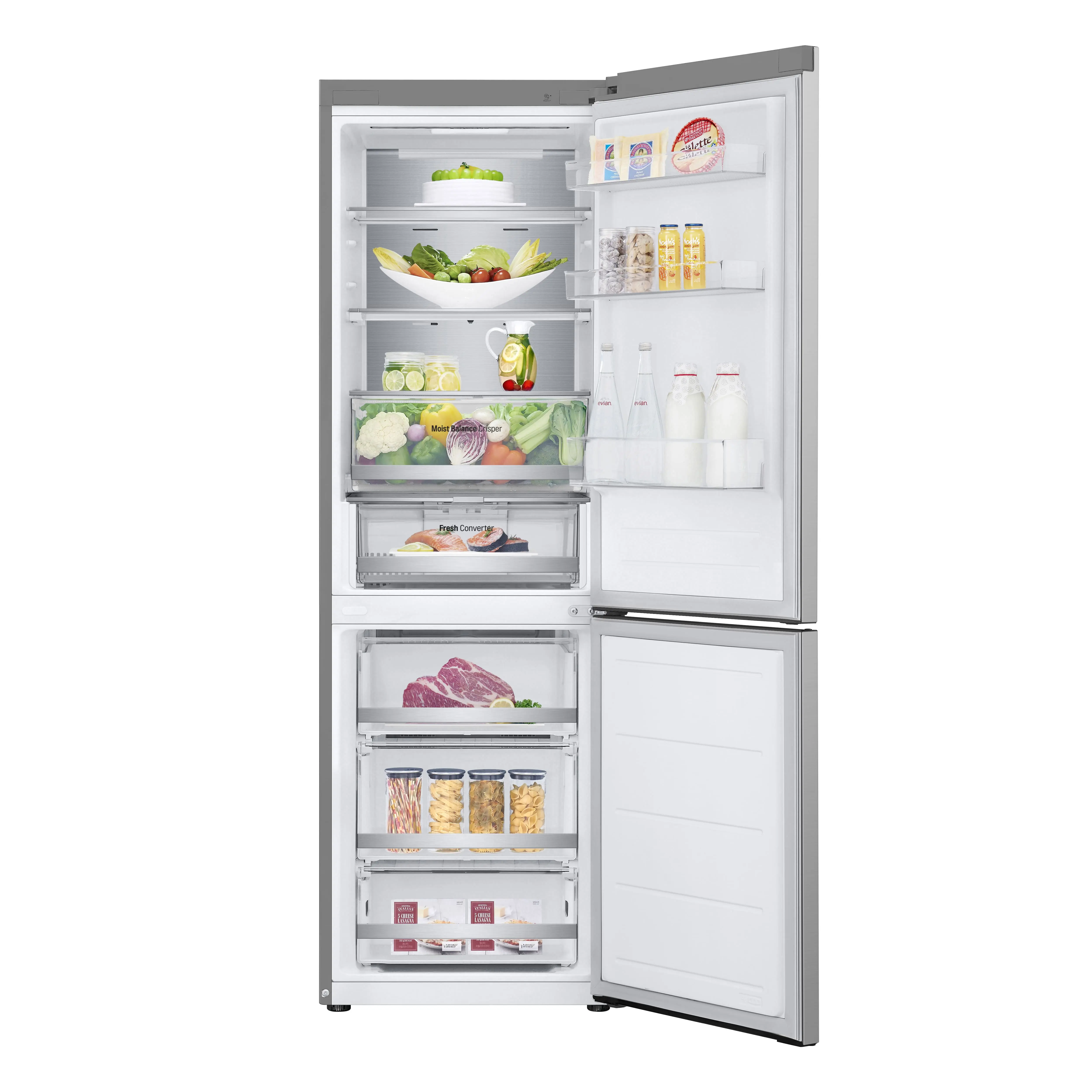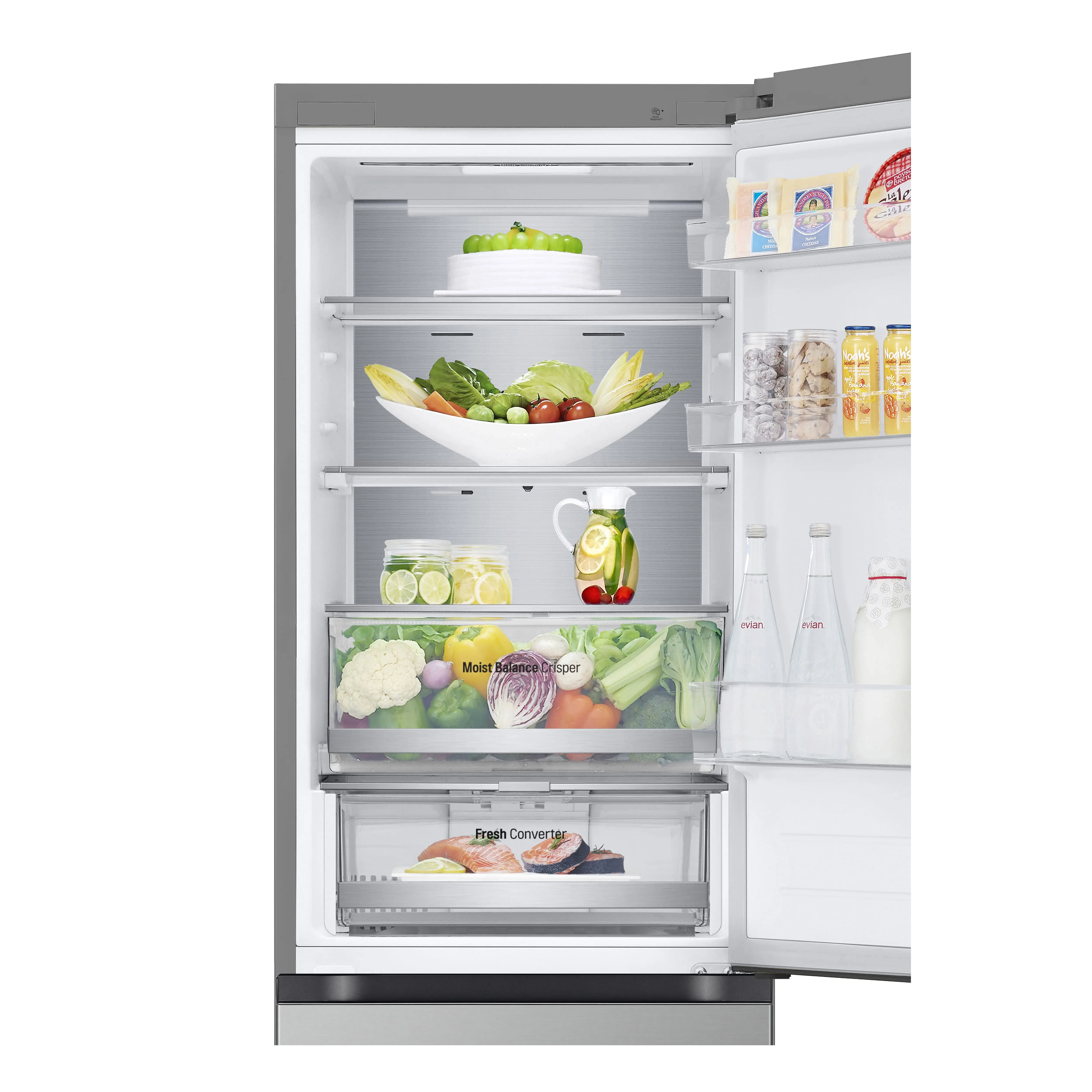 LG GC-B459FNPW – це стильний і енергоефективний холодильник із нижньою морозильною камерою та загальним об’ємом 344 л (234 л – холодильне відділення, 110 л – морозильне). Технологія No Frost запобігає утворенню льоду, а інверторний компресор забезпечує тиху та економну роботу (A++). Завдяки Metal Fresh та зоні свіжості продукти зберігають свіжість довше.