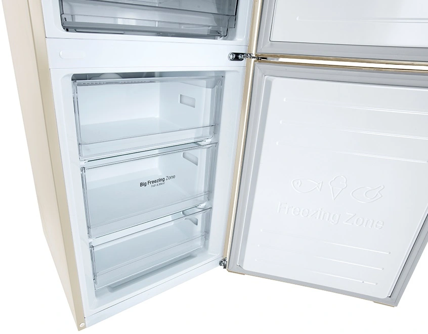 Холодильник LG B509MEW з нижньою морозильною камерою — це містка модель, що пропонує 384 літри корисного об’єму для зберігання продуктів. Завдяки технології Total No Frost ви забудете про ручне розморожування, а система DoorCooling забезпечує рівномірне охолодження. З інтелектуальними функціями, такими як Wi-Fi, Smart Diagnosis та еко-режим, холодильник робить повсякденне користування ще зручнішим. Клас енергоефективності А++ дозволяє заощаджувати електроенергію, а низький рівень шуму 36 дБ робить його непомітним у вашому домі.