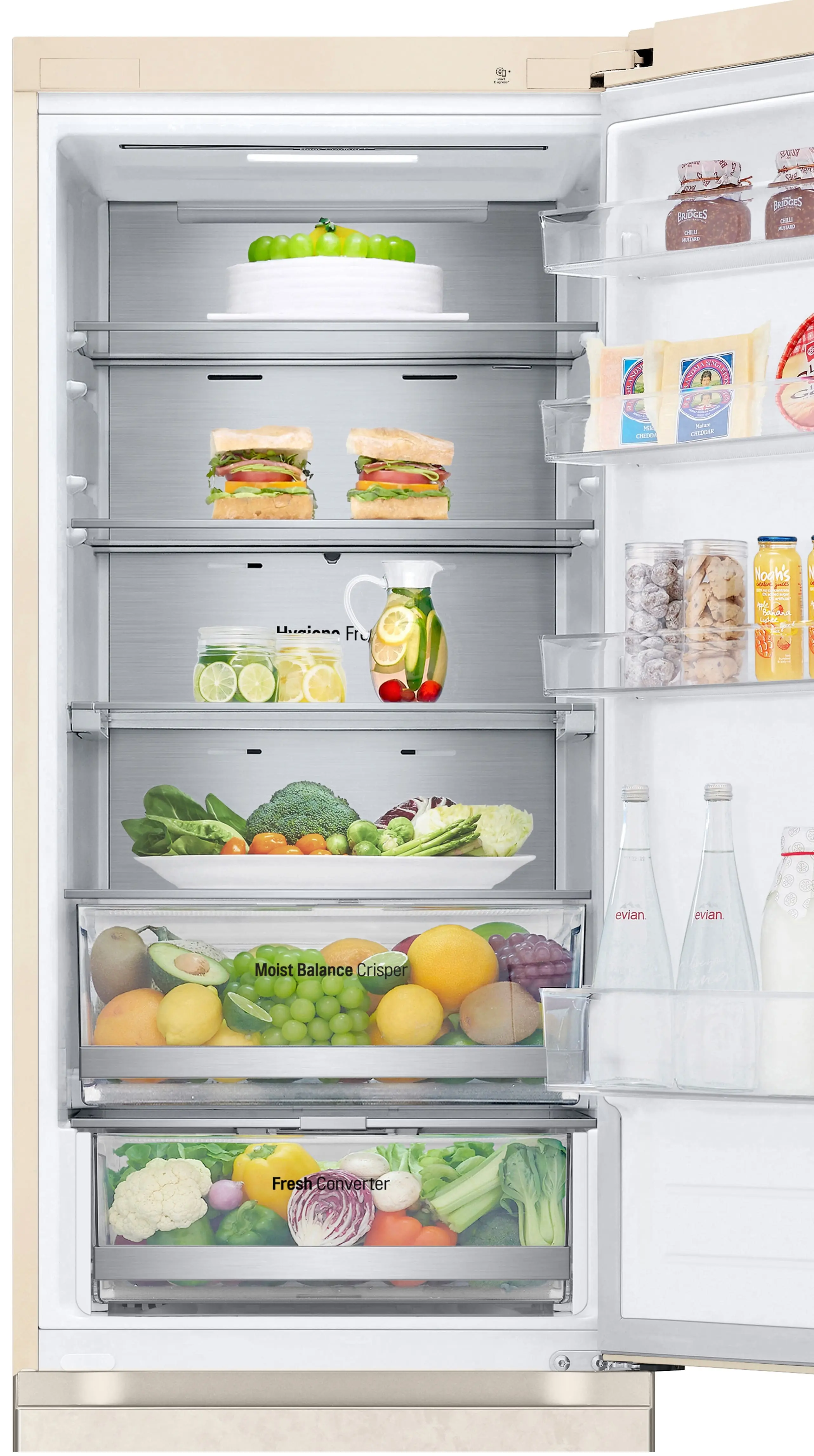 Холодильник GC-B509FEPW – це стильний і функціональний пристрій із нижньою морозильною камерою та загальним об’ємом 387 л (277 л – холодильне відділення, 110 л – морозильне). Система No Frost запобігає утворенню льоду, а інверторний компресор забезпечує тиху та економну роботу (клас енергоефективності A++).