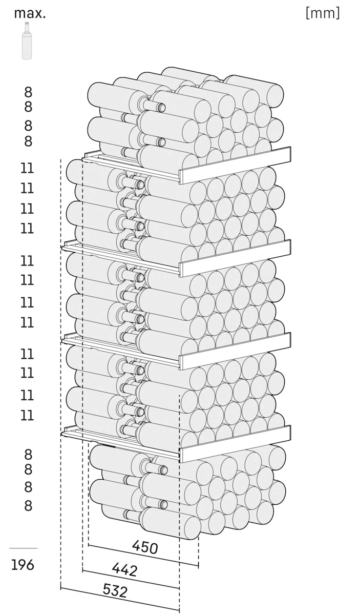 - Вместимость: до 196 бутылок