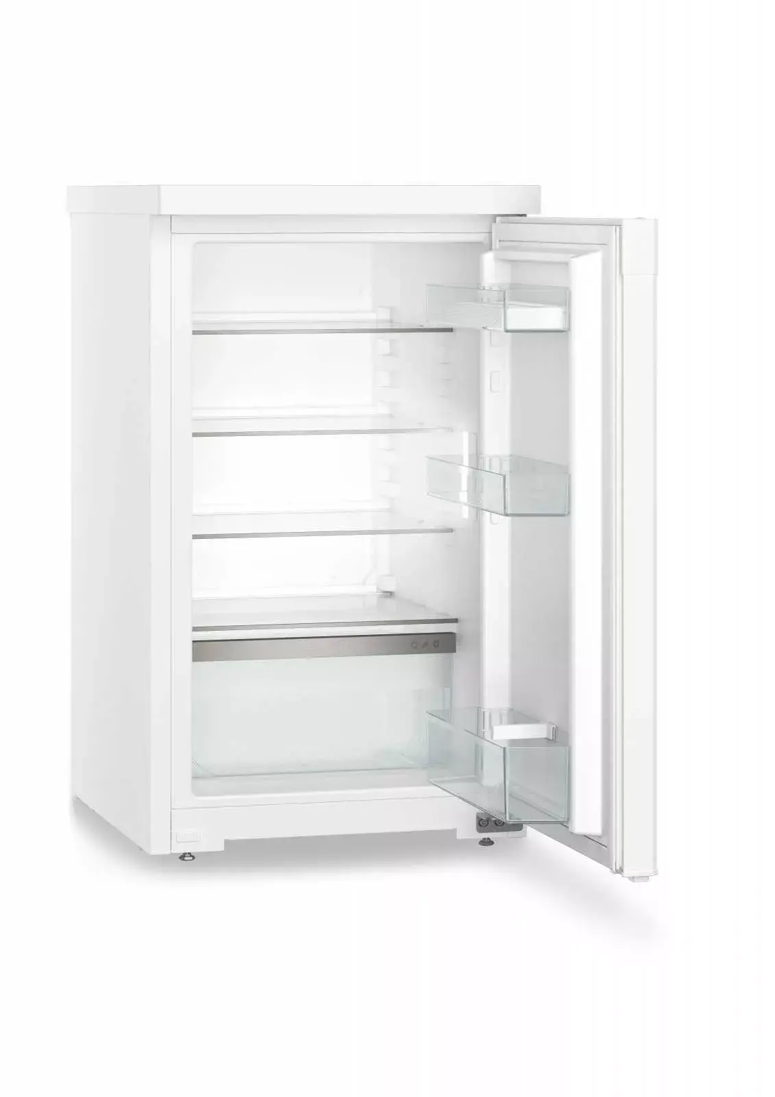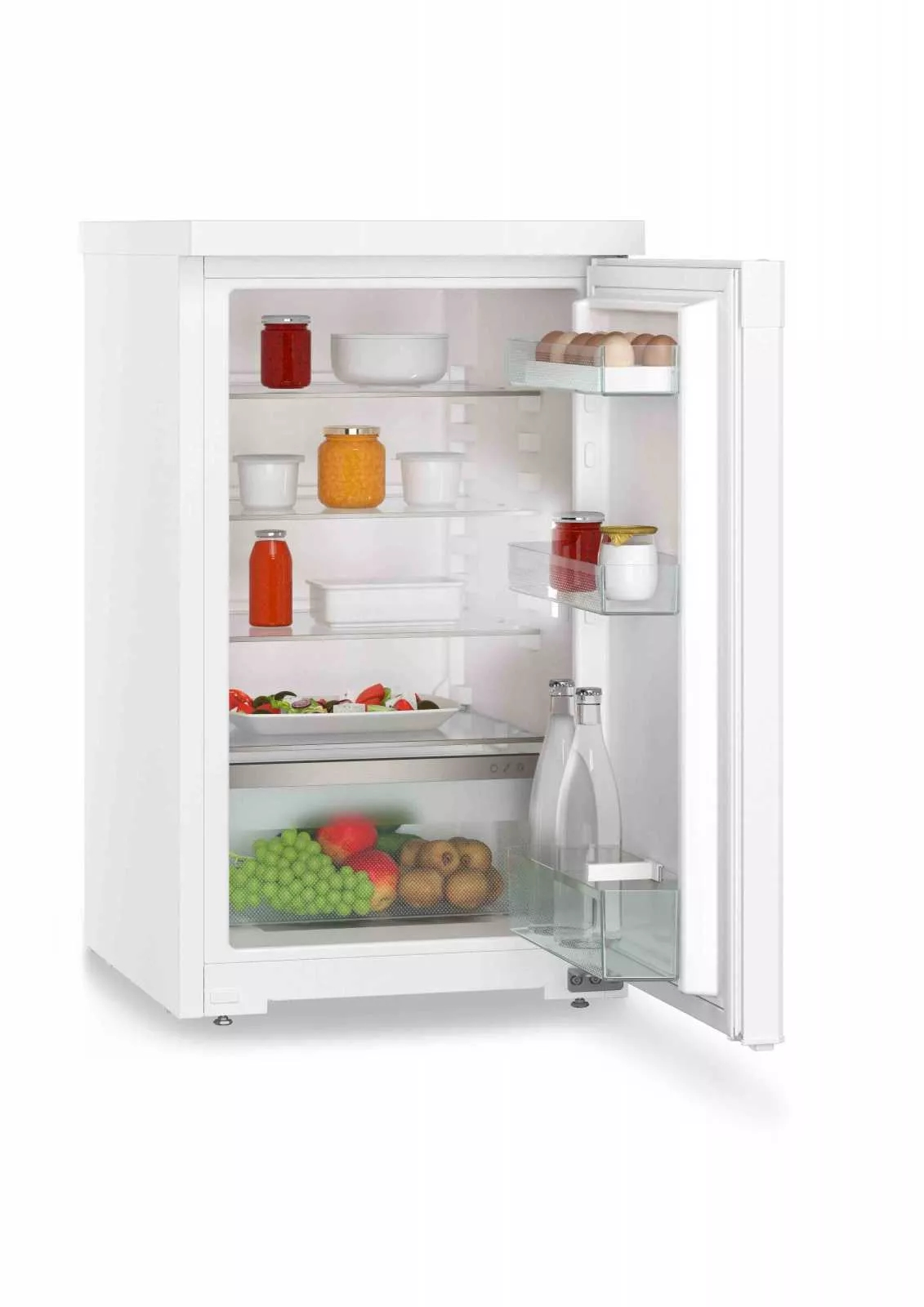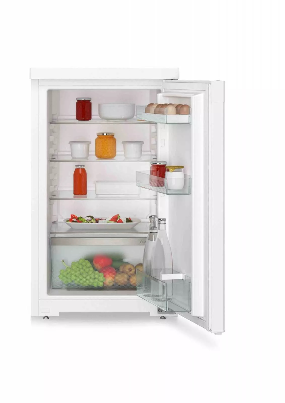 Liebherr RE 1200 – це компактний холодильник під стільницю об'ємом 110 літрів. Завдяки функції SuperCool, він швидко охолоджує нові продукти, підтримуючи оптимальну температуру. Світлодіодне бокове освітлення та скляні полиці забезпечують чудову видимість вмісту, навіть при повному завантаженні. Управління температурою здійснюється через TouchControl, що робить його зручним у використанні. Особливості, як-от DoorStop для запобігання запахам та міцна стільниця, що витримує подряпини, додають практичності.