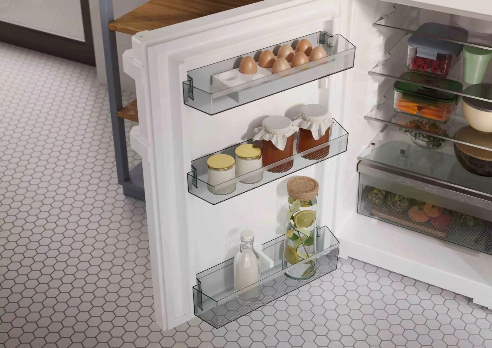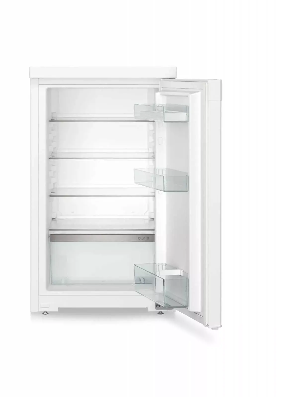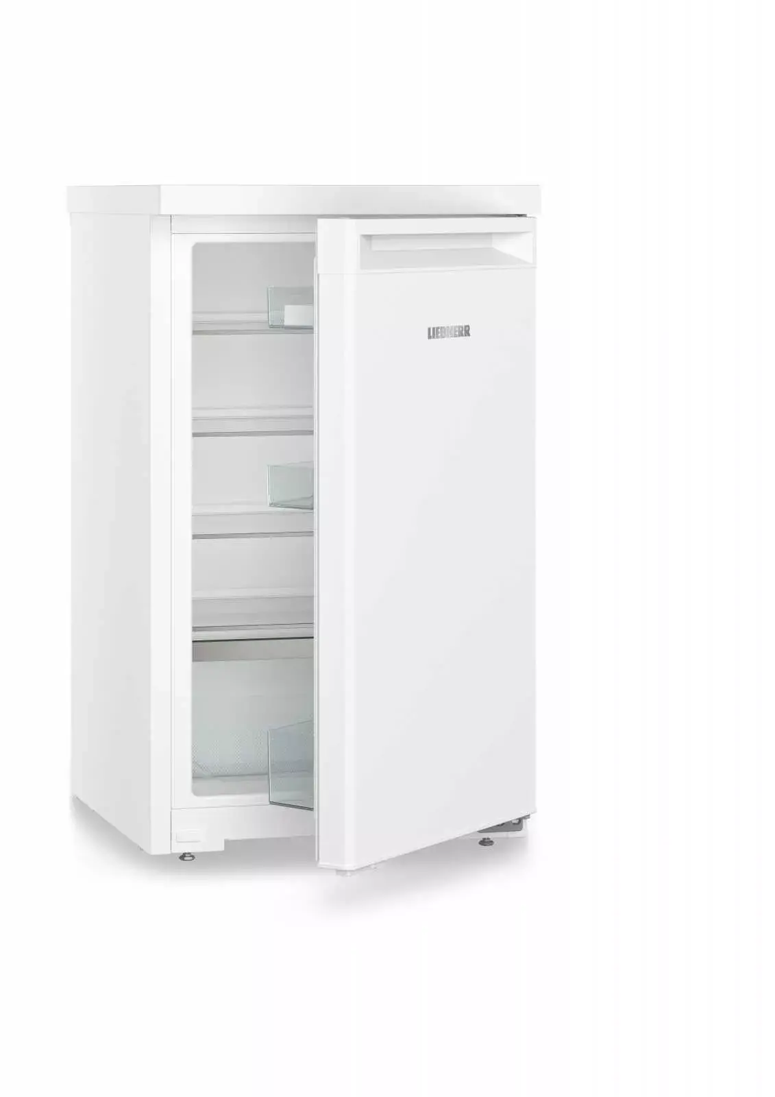 Liebherr RE 1200 – це компактний холодильник під стільницю об'ємом 110 літрів. Завдяки функції SuperCool, він швидко охолоджує нові продукти, підтримуючи оптимальну температуру. Світлодіодне бокове освітлення та скляні полиці забезпечують чудову видимість вмісту, навіть при повному завантаженні. Управління температурою здійснюється через TouchControl, що робить його зручним у використанні. Особливості, як-от DoorStop для запобігання запахам та міцна стільниця, що витримує подряпини, додають практичності.