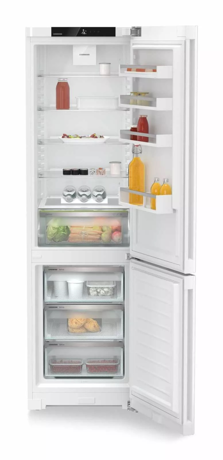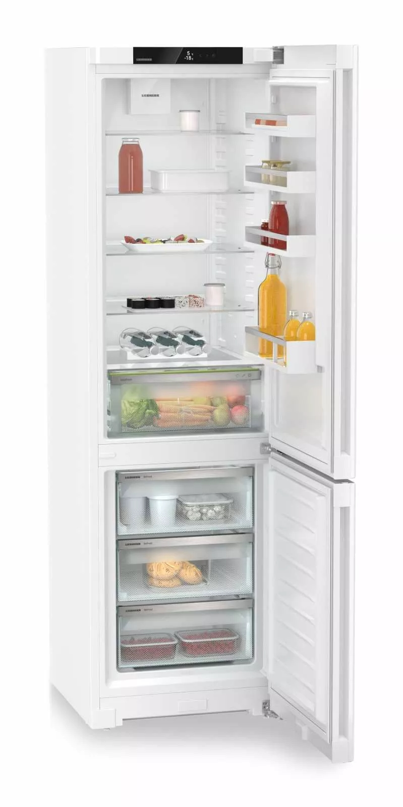 Модель Liebherr CNd 5703 — это современный двухкамерный холодильник с нижней морозильной камерой, сочетающий передовые технологии и элегантный дизайн. Система NoFrost избавляет от необходимости размораживания, а технология DuoCooling обеспечивает независимое охлаждение холодильного и морозильного отделений, предотвращая смешивание запахов.