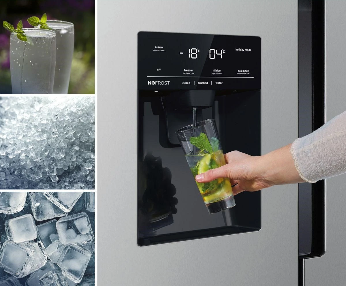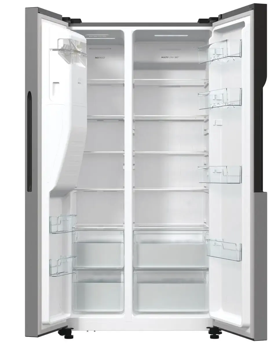 Холодильник SBS Gorenje NRR9185ESXL1 – сучасна модель із великим об’ємом та передовими технологіями збереження свіжості. Простора шухляда CrispZone забезпечує оптимальні умови для фруктів і овочів. FastFreeze заморожує продукти при -24°C, зберігаючи корисні речовини. MultiFlow 360° рівномірно розподіляє холодне повітря, а система NoFrost запобігає утворенню інею. Інверторний компресор знижує шум і споживання енергії. Додаткові функції, такі як EcoMode, режим «Відпустка», світлодіодне освітлення та дозатор для води, роблять використання холодильника ще комфортнішим та економічнішим.