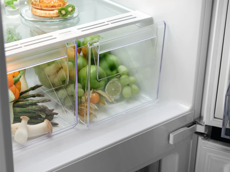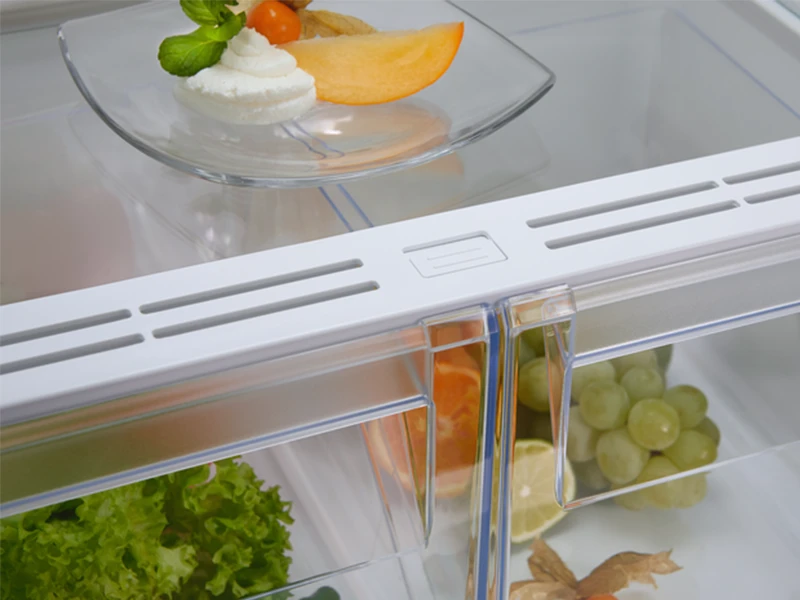 Овочі збережуть свій чудовий смак завдяки ящику Humidity Control. Він створює оптимальну среду зберігання контролю вологості повітря. Закриваючи вентиляційні отвори, ви створюєте ідеальні умови для зберігання зелені, а відкриваючи оптимальне місце для інших продуктів.