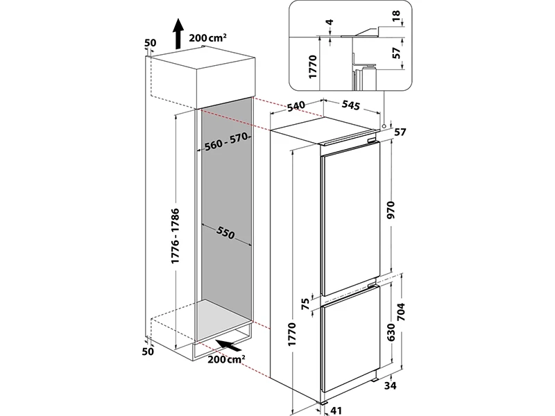 * Розміри ніші для вбудовування (ВхШхГ,см): 177,6x56x56