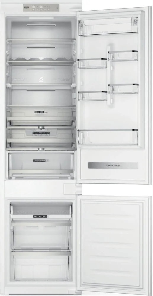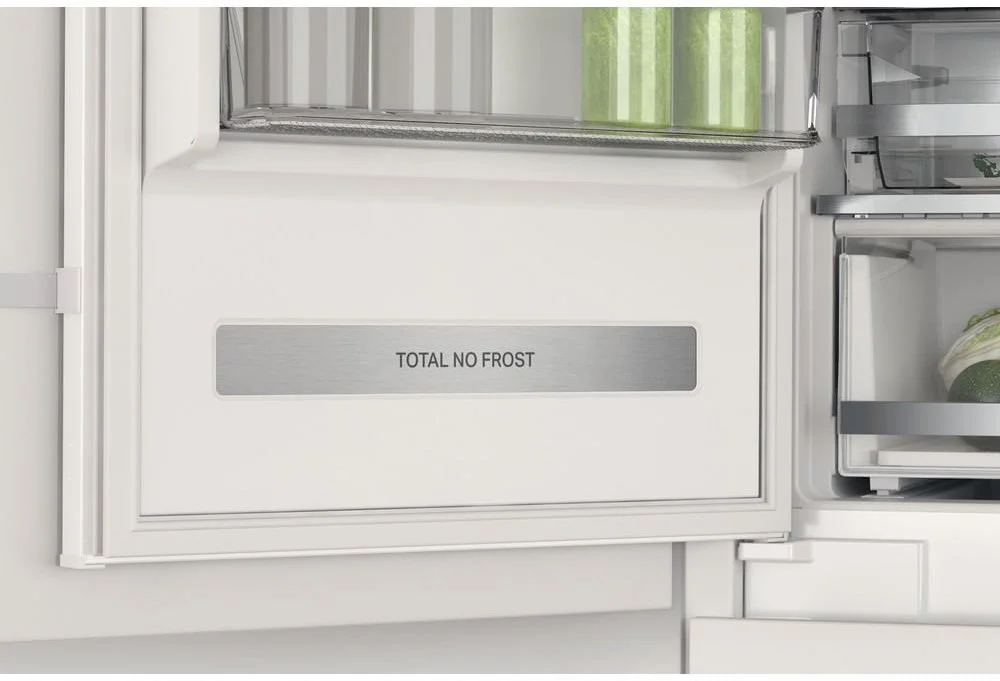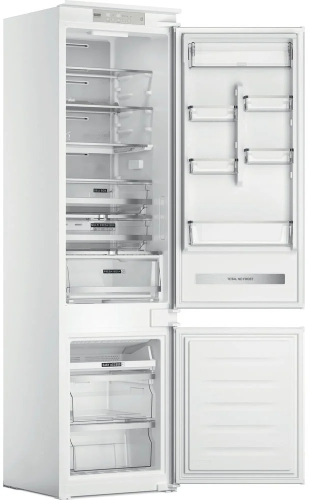 Whirlpool WHC20T593P — это высокий встраиваемый холодильник с нижней морозильной камерой и системой Total NoFrost, которая избавляет от необходимости размораживания. Благодаря увеличенной высоте и полезному объёму, он отлично подойдёт для семьи и активного кулинарного использования.