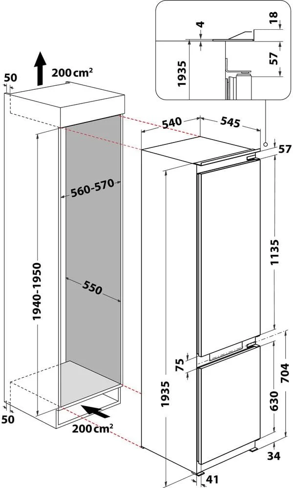 - Тип: холодильник с морозильной камерой (встраиваемый)