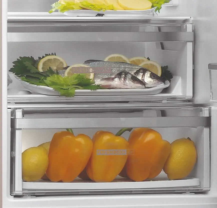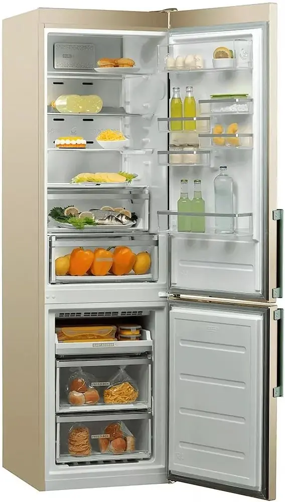 Насолоджуйтесь неймовірною свіжістю та якістю продуктів! Холодильник Whirlpool W9 931A BH з нижньою морозильною камерою: з системою охолодження Dual No Frost. Система охолодження Dual No Frost - для збереження неперевершеної свіжості продуктів. Дві незалежні системи охолодження No Frost запобігають змішуванню запахів між холодильною та морозильною камерами. Таким чином, сухе повітря з морозильника не шкодить свіжості продуктів у холодильній камері. Технологія 6th Sense Precision Control, яка швидко відновлює температуру та підтримує ідеальний рівень вологості в холодильнику. Тепер ви можете розміщувати овочі та фрукти в будь-якому місці холодильної камери до 15 діб без ризику пересушування.
