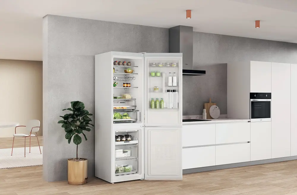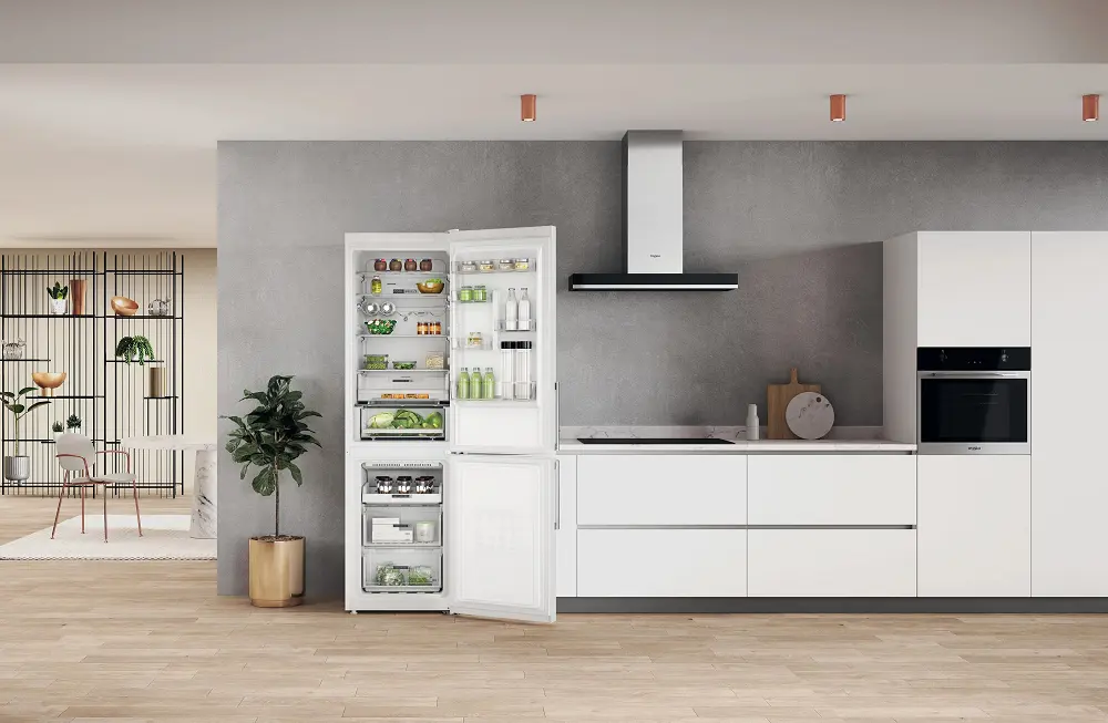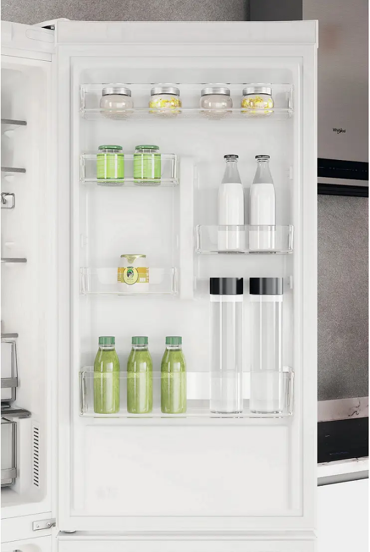 Окремо стоячий холодильник з морозильною камерою Whirlpool. Дизайн Optic Inox із захистом від відбитків пальців. NoFrost, технологія захисту від обмерзання, яка ефективно запобігає утворенню льоду в морозильній камері завдяки зниженню вологості. Високий прилад, що відповідає потребам сім'ї. Скляні полиці, які забезпечують надійність та елегантність одночасно.