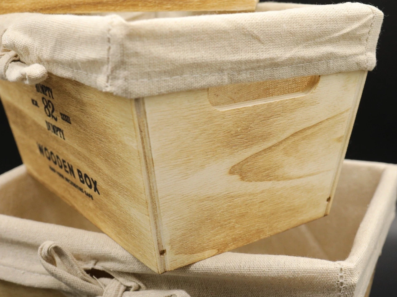 Ящик декоративный деревянный с тканью, 28х19х14см, 3шт, Цвет «дерево»