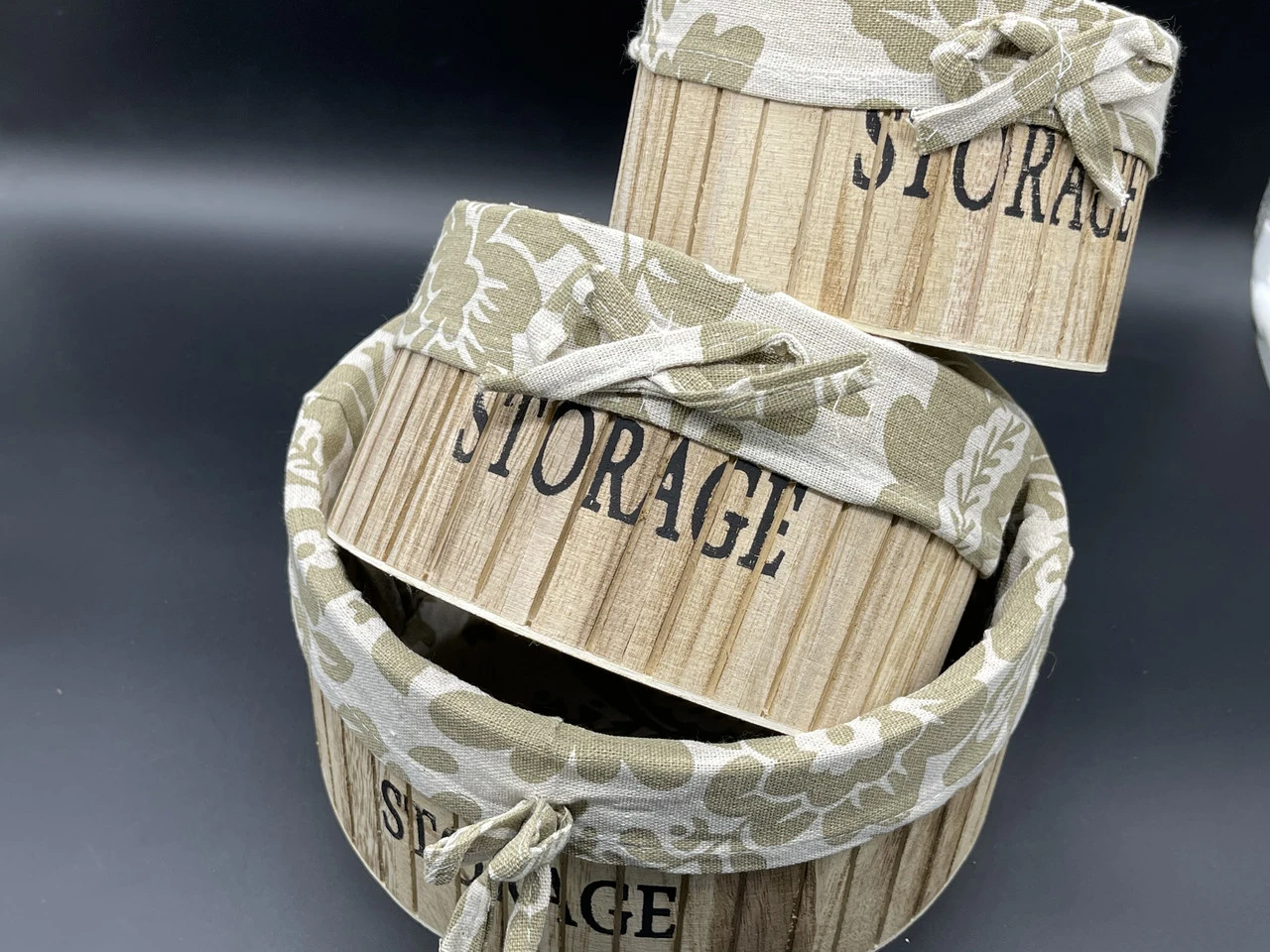 Ящик декоративный деревянный с тканью, 23х11см, 3шт, Цвет «дерево»