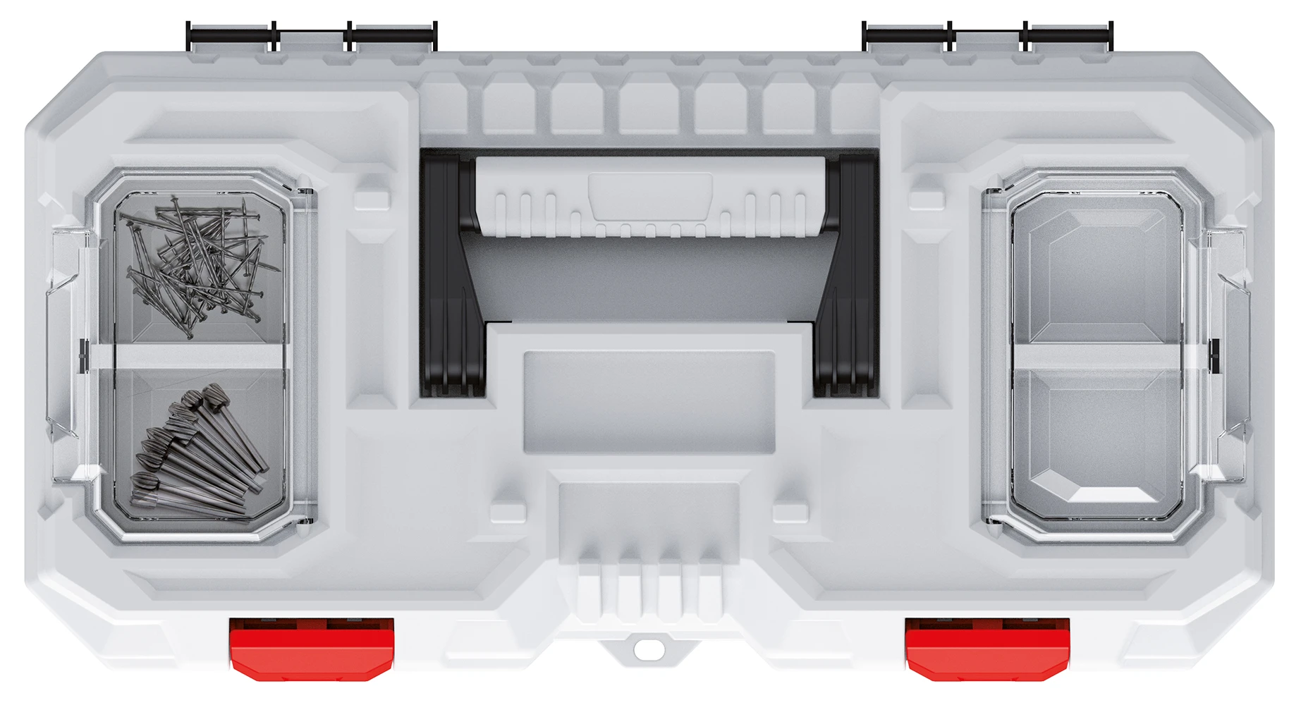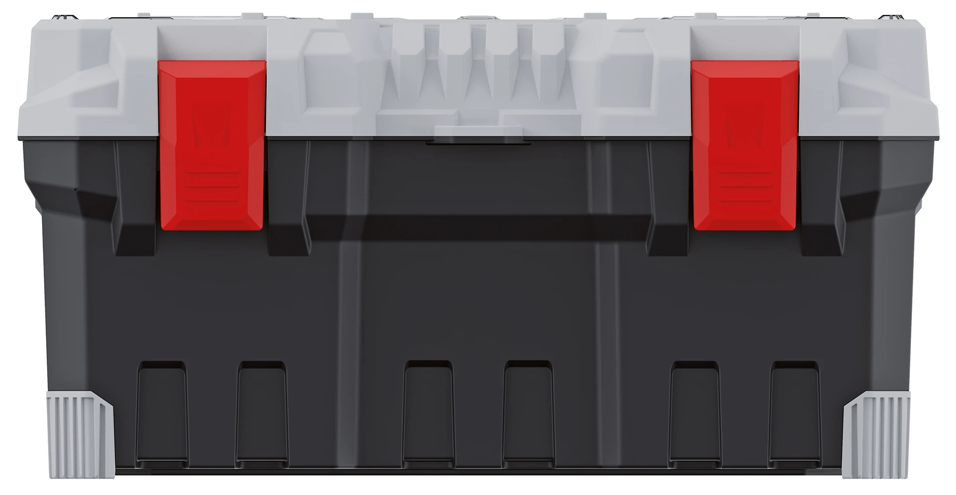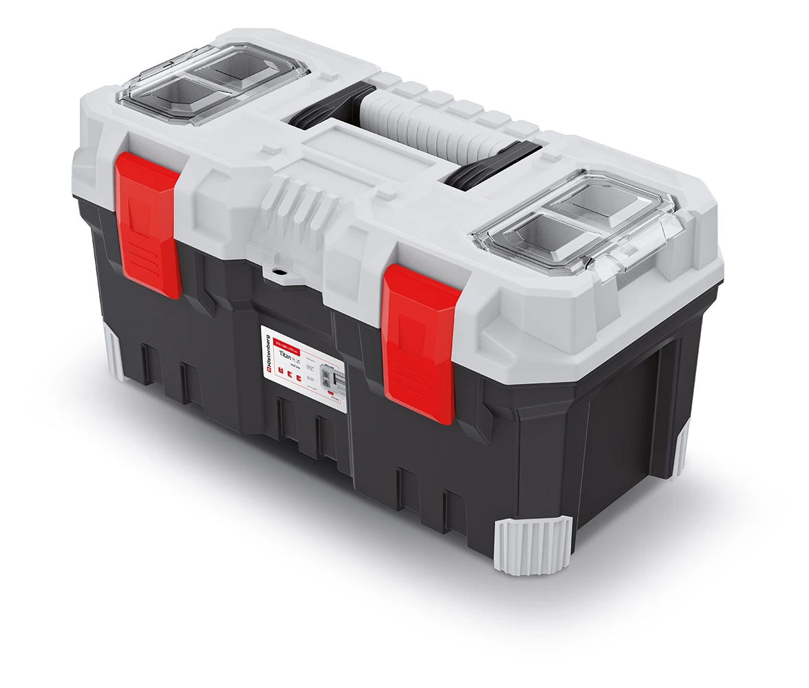 Ящик для інструментів Kistenberg TITAN PLUS 22" (554 мм) – надійний вибір для зберігання інструментів. Оснащений двокомпонентною ергономічною ручкою, двома органайзерами з прозорими полікарбонатними кришками та переносним лотком. Антиударні кутові накладки з еластомеру забезпечують додатковий захист. Витримує до 20 кг.