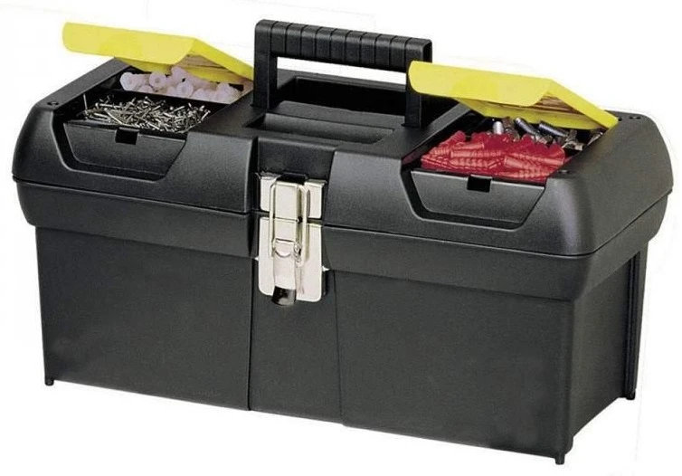 Ящик для інструменту серії 2000 пластмасовий з 2-ма вбудованими органайзерами, лотком і металевими замками. Металеві замки, 2 відділення для болтів і гайок в кришці.