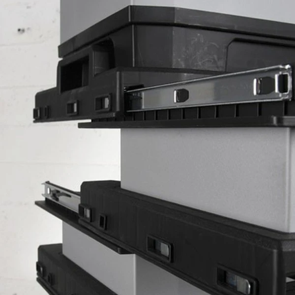 Багатосекційна металопластикова консольна система великого об'єму 568x893x389 мм, з колесами. Знімний верхній ящик з лотком, дві висувні секції та великий металопластиковий блок зберігання з колесами. Поєднання переваг пластику із міцністю металу. Конструкція для одночасного доступу до всіх відділень зберігання.