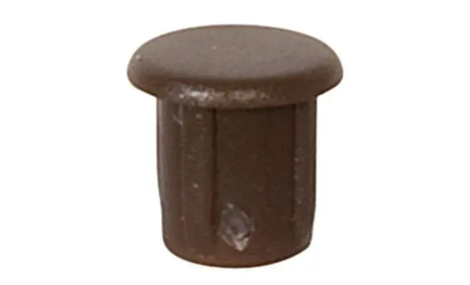 Заглушка для вдавлювання у глухий отвір діаметром - 5 мм. Заглушка виготовлена з пластмаси темно-коричневого кольору, розміри заглушки: діаметр голівки 6,6 мм, товщина голівки 0,8 мм, діаметр ніжки 5 мм, висота ніжки 5,5 мм.