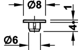 Заглушка, для вдавлювання у глухий отвір діаметром 6 мм, матеріал: пластмаса, колір: білий, розміри: діаметр голівки 8 мм, товщина голівки 1 мм, діаметр ніжки 6 мм, висота ніжки 4 мм.