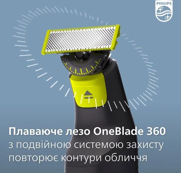 Замінне лезо Philips OneBlade QP410/50. Унікальна технологія OneBlade. Philips OneBlade – це новий революційний гібридний стайлер, який може підстригати, голити та створювати чіткі лінії та краї на волоссі будь-якої довжини. Подвійна система захисту – гладке покриття із закругленими кінцями – робить гоління більш легким та комфортним. Система гоління включає лезо, що швидко рухається (12 000 рухів за хвилину), завдяки чому пристрій ефективний навіть при використанні на волоссі будь-якої довжини.