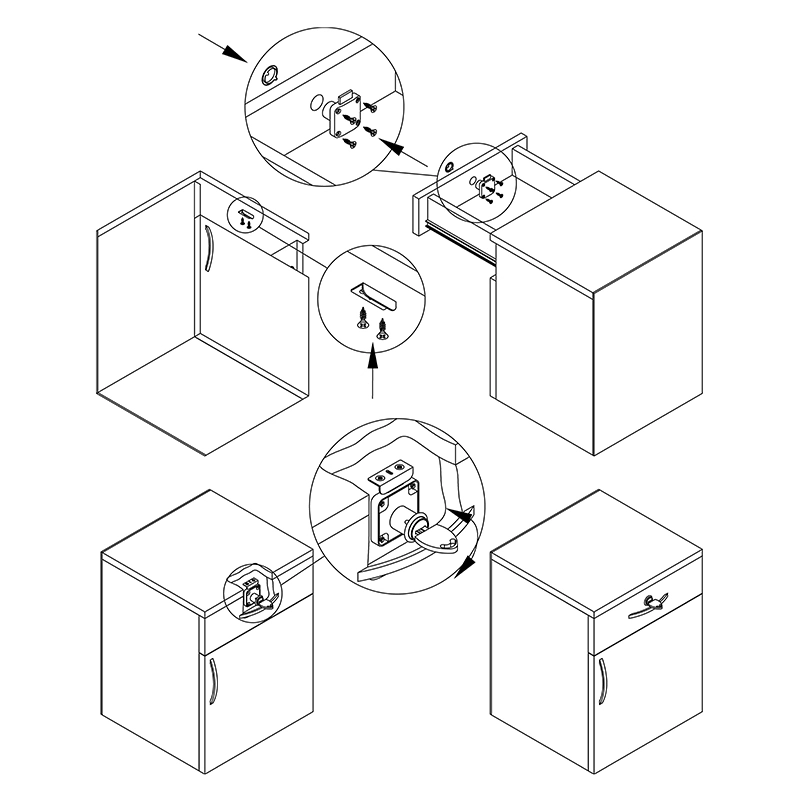 Замок DC KL-138A-22 применяется в мебели для дома, офиса, торговых и учебных заведений. Его устанавливают на тумбы, шкафчики, архивные секции, почтовые ячейки или персональные шкафы, где требуется ограничить доступ к содержимому. Подходит для ДСП, МДФ и тонких металлических конструкций.