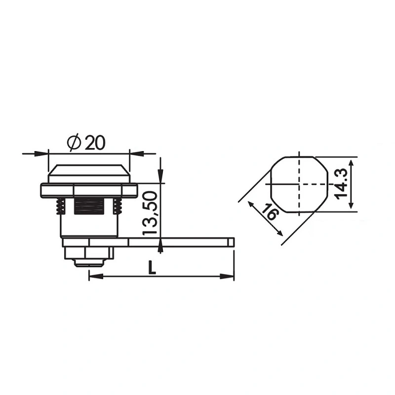 Замок для электрощитового оборудования с ключом мини RZ 219-1-5 Хром
