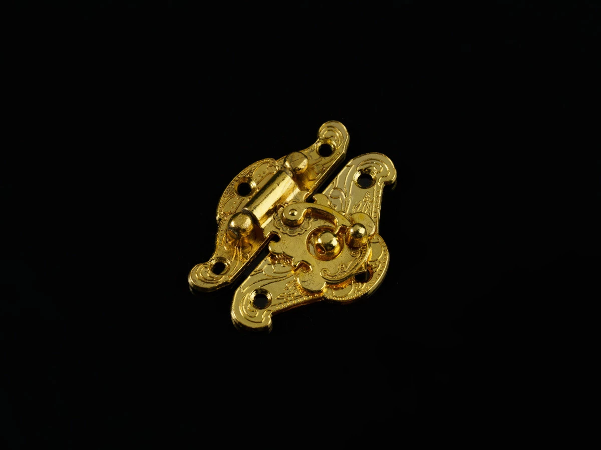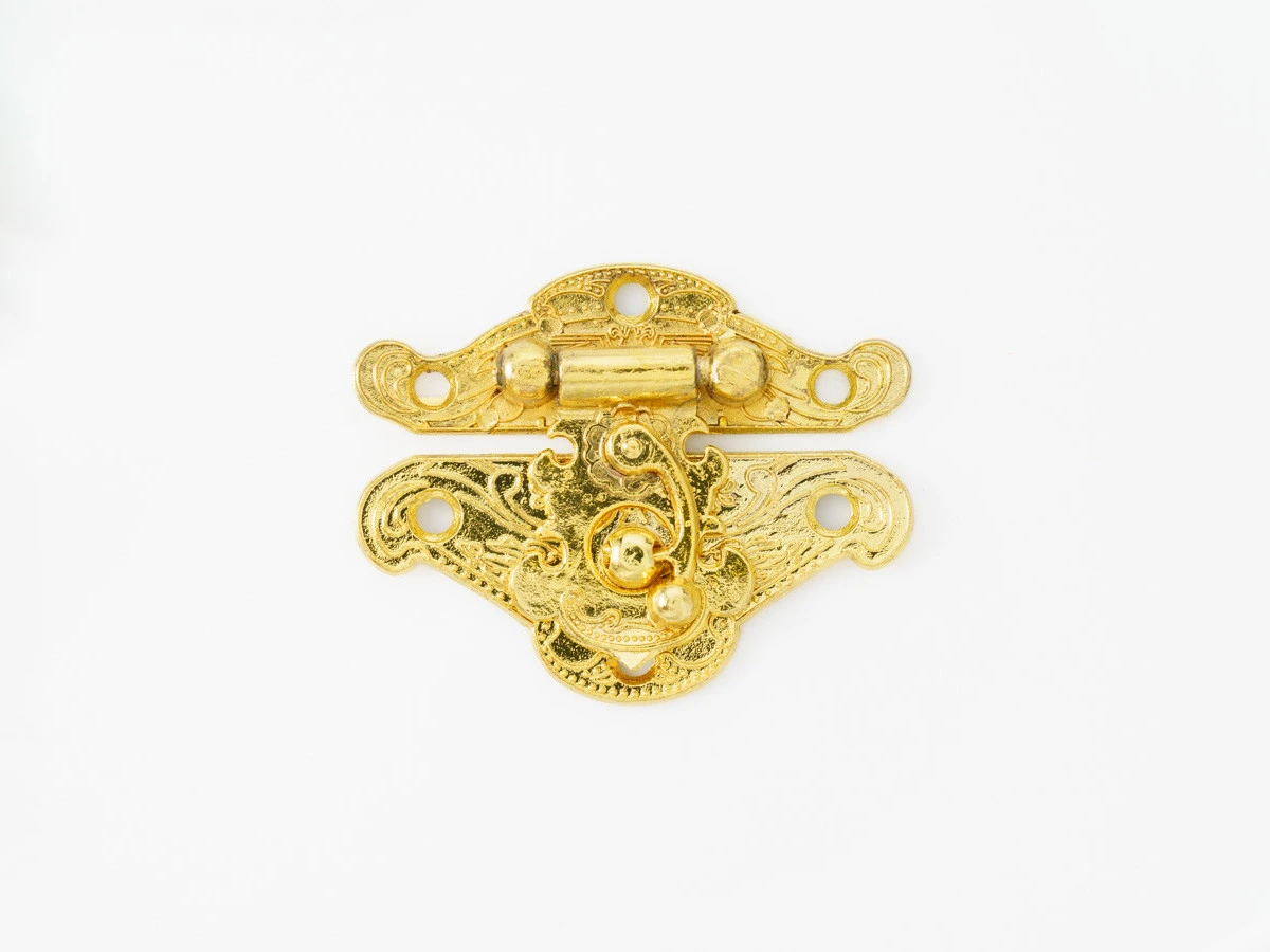 Декоративный замок A-085 — прочный и выразительный элемент фурнитуры в винтажном стиле. Размер 48×36 мм делает его подходящим для средних и крупных изделий — шкатулок, коробок, кейсов и декоративных сундуков. Металлический корпус с золотистым покрытием устойчив к потускнению и придаёт изделию благородный блеск.