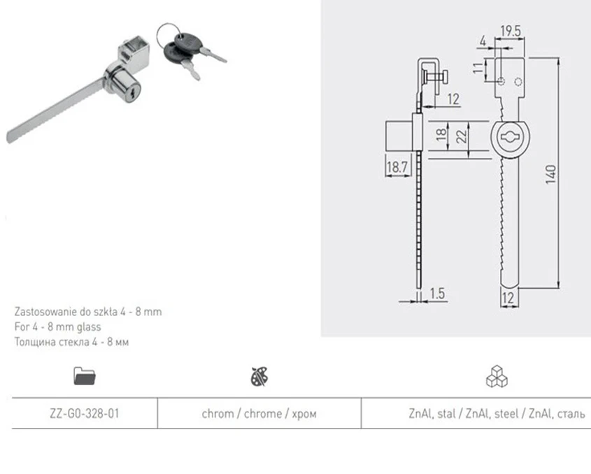 Замок GTV ZZ-G0-328-01-S — надёжное, удобное и эстетичное решение для мебели. Внутренний монтаж, прочность и незаметность делают его идеальным вариантом для современных офисных и бытовых конструкций.