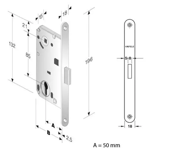Замок Hafele магнитный PC 18х196мм 8мм 911.22.766 Никель полированный