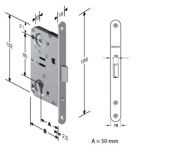 Замок врезной Hafele PC 18х196мм 8мм 911.23.647 Белый