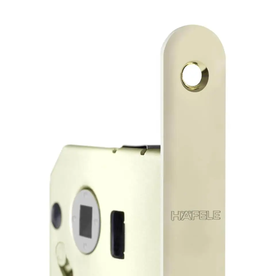 Лицьова планка магнітного замка закруглена. Лицьова планка: сталь, колір / покриття: латунь полірована.