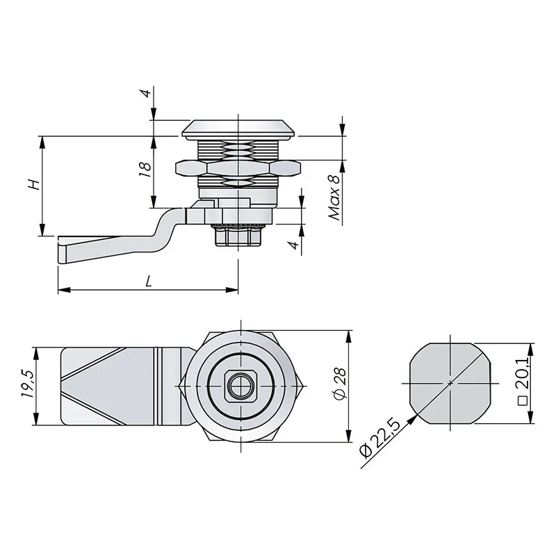 Замок на панель керування Industrilas 6-110, нерж, під квадратний ключ, IP54