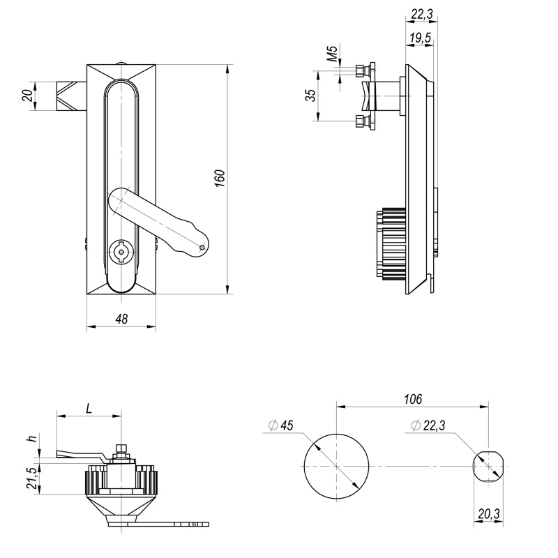 - Монтаж без метизов, за счет зажима. Одно стандартное посадочное 20х22 мм, второе – круглое.