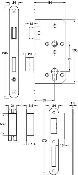 Замок врізний PC нержавіюча сталь золотий 55/20, форма заокруглена 91125452