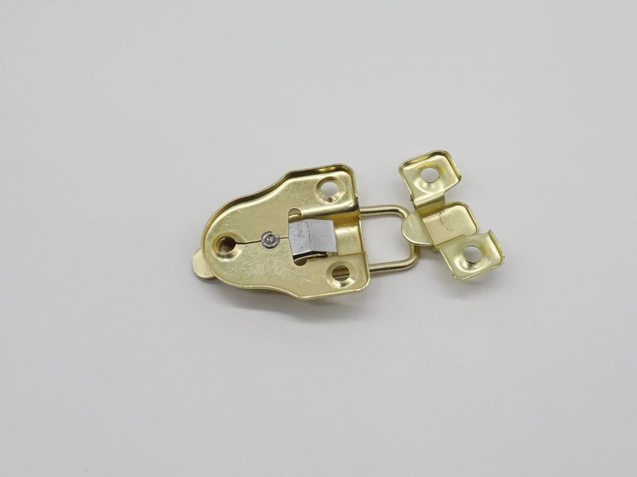 Декоративный замок A-076-2 — это стильное и надёжное решение для шкатулок и сундуков. Его форма и золотистое покрытие придают изделиям благородство и завершённость.