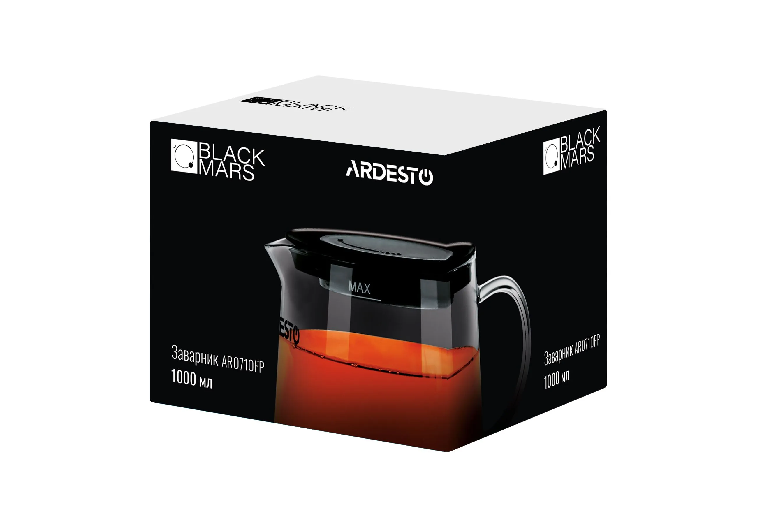 Заварник Ardesto Black Mars, 1000мл, боросилікатне скло, нержавіюча сталь, прозорий