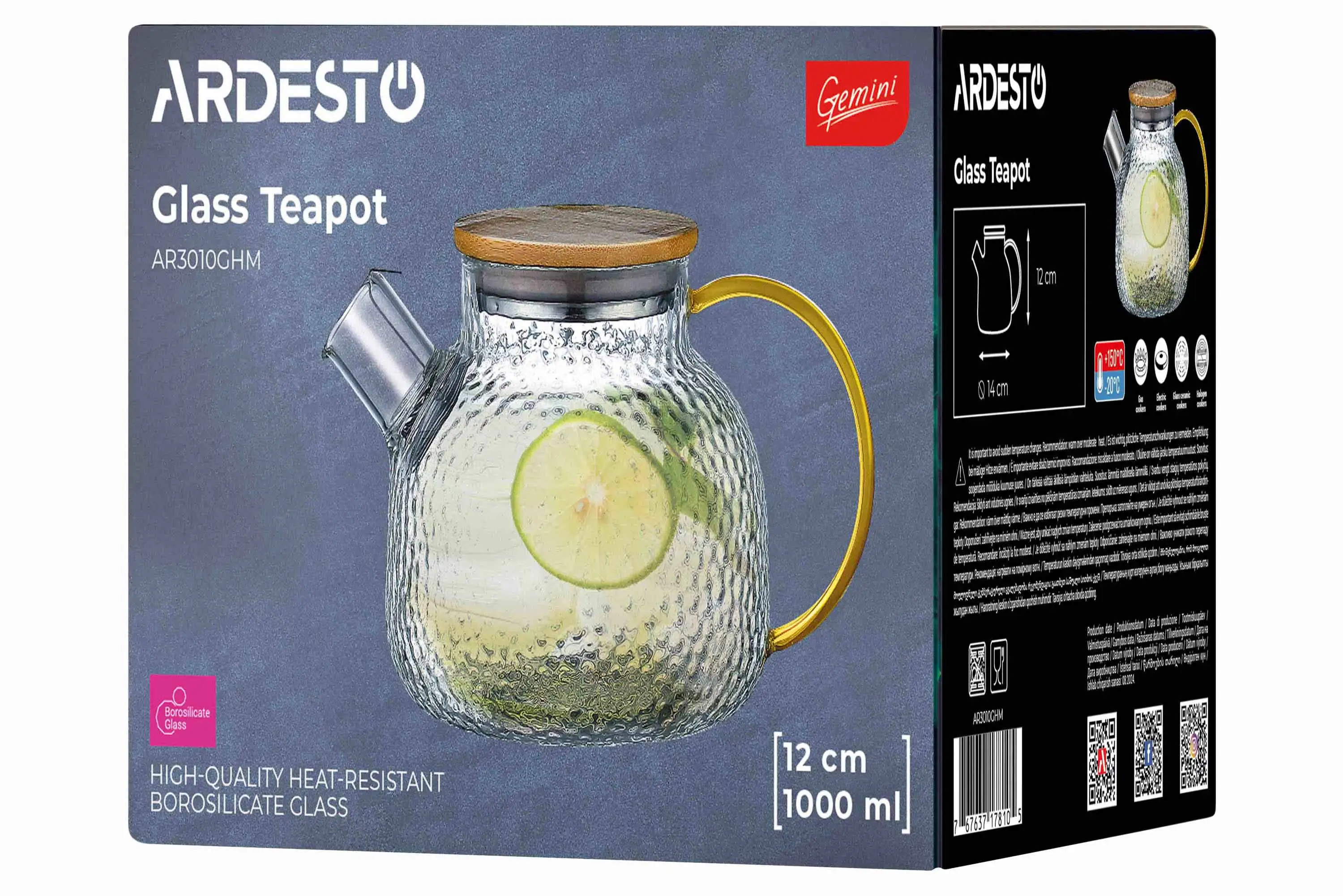 Заварник Ardesto Gemini Dew 1000мл, боросилікатне скло, бамбук, прозорий