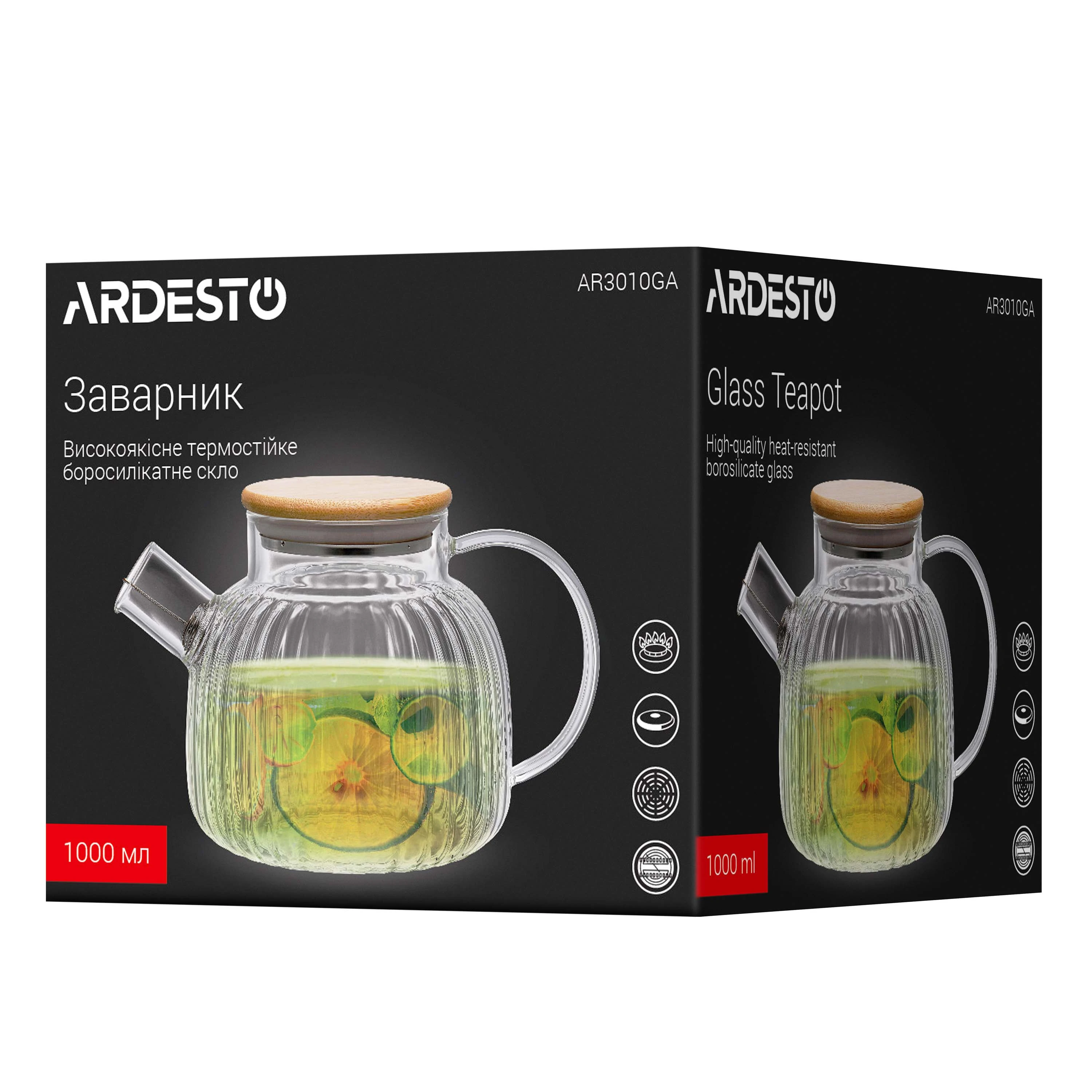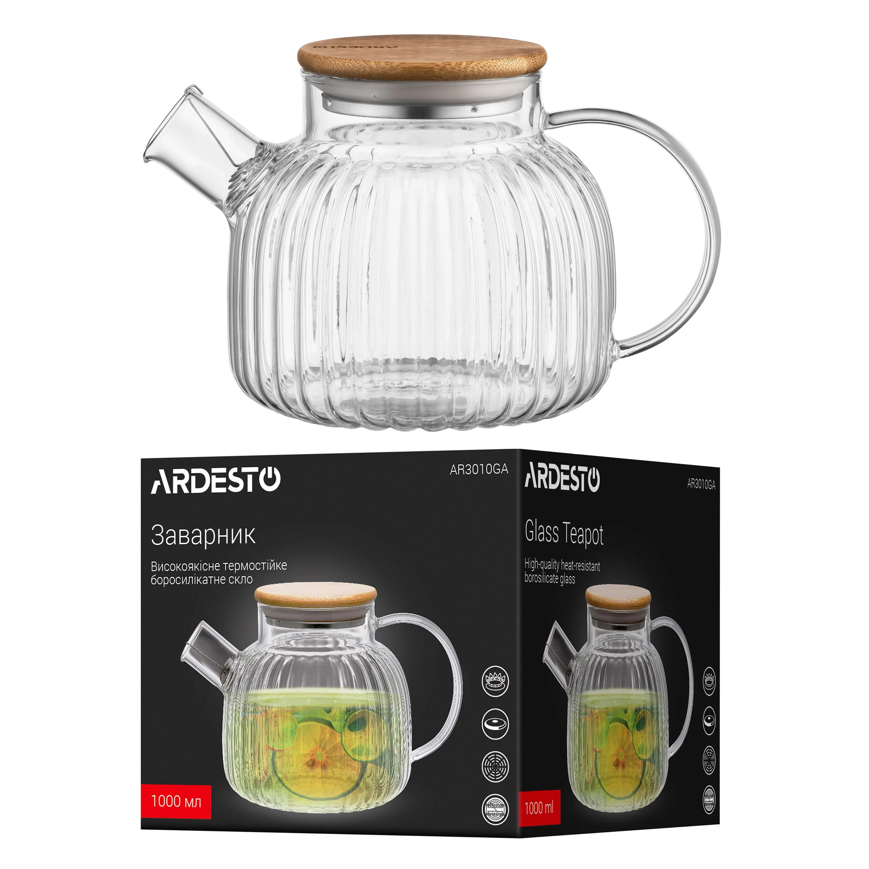 Заварник Ardesto Iceberg, 1000мл, боросилікатне скло, бамбук, прозорий