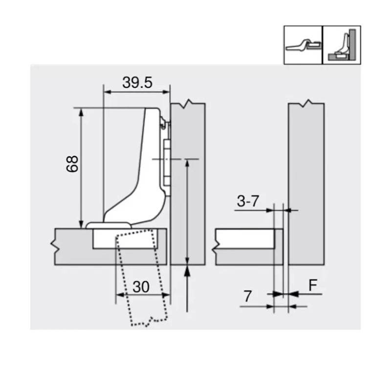 - Угол установки петли 90