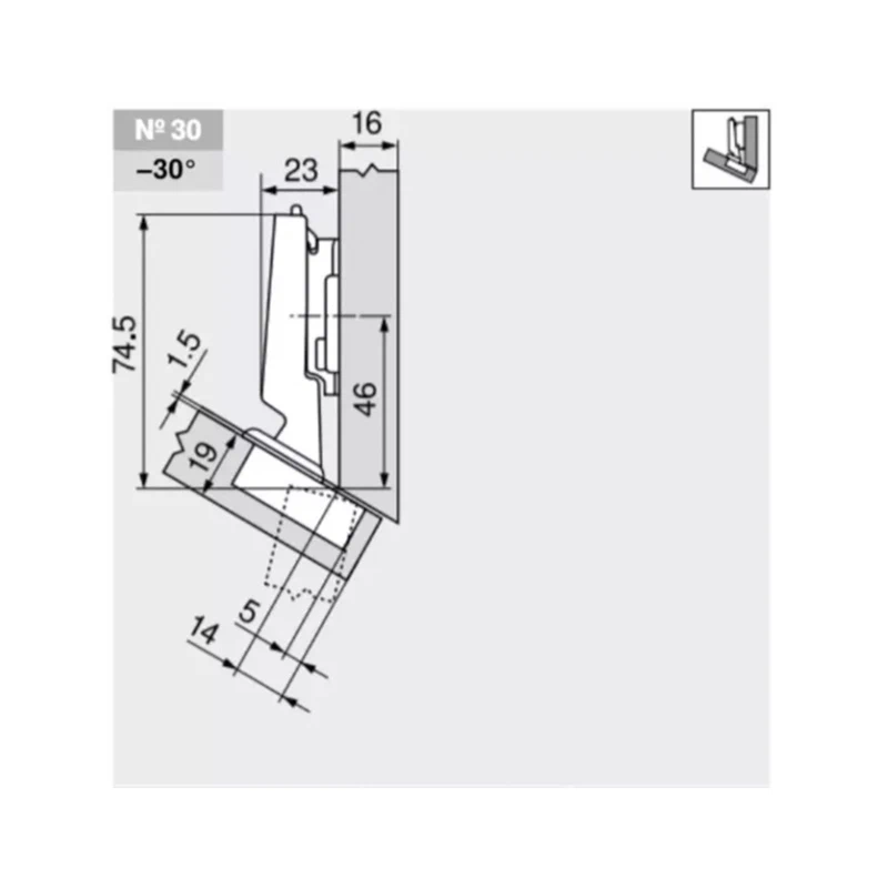 Петля Blum угловая -30⁰ угол открывания 110⁰ 78A5451.T MB30- V50 NI Никель