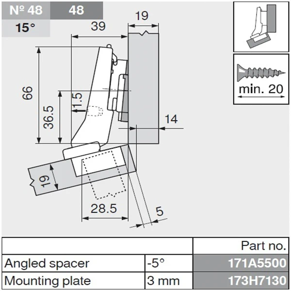 Петля Blum угловая накладная +20⁰ угол открывания 95⁰ 78A9555.T MB20+ V50 NI Никель